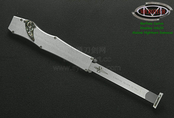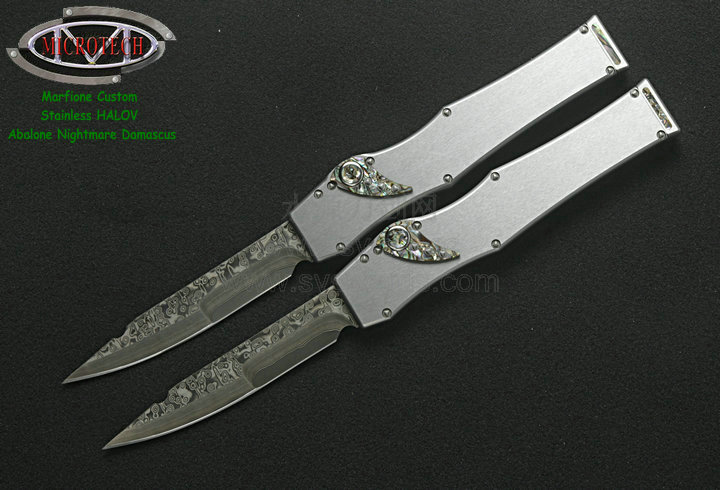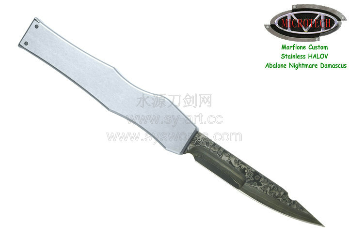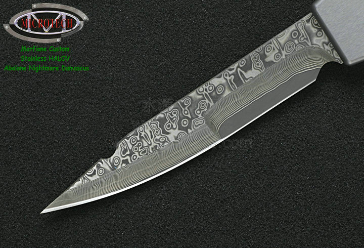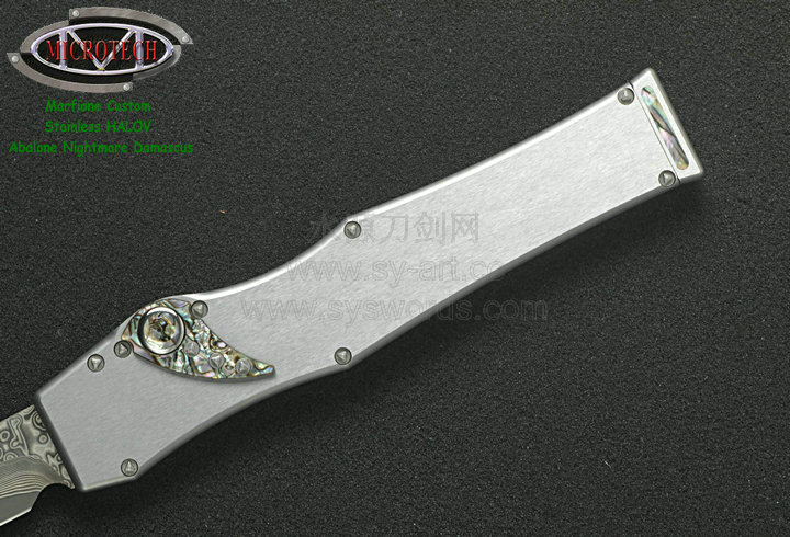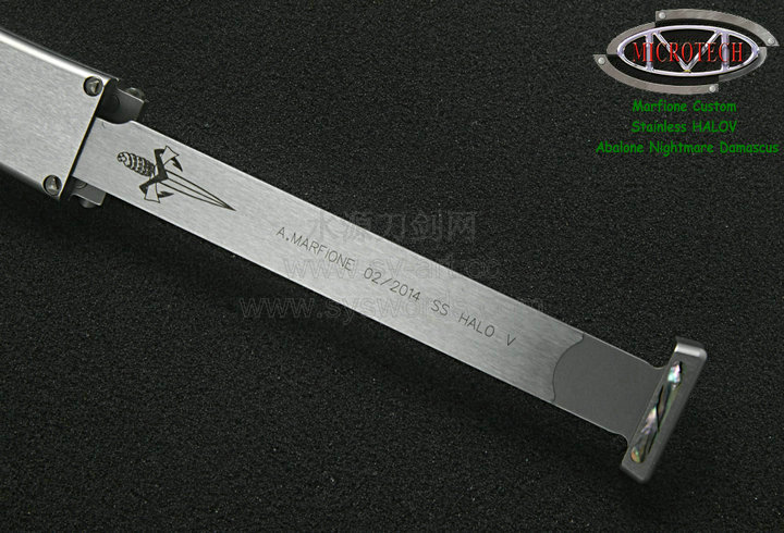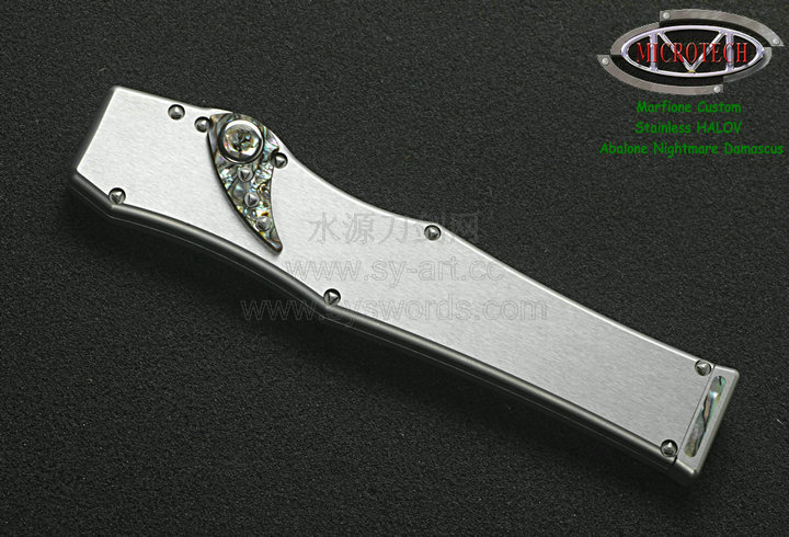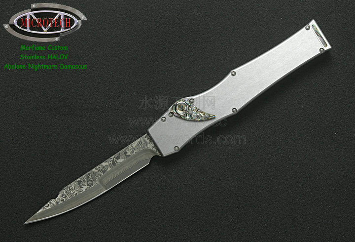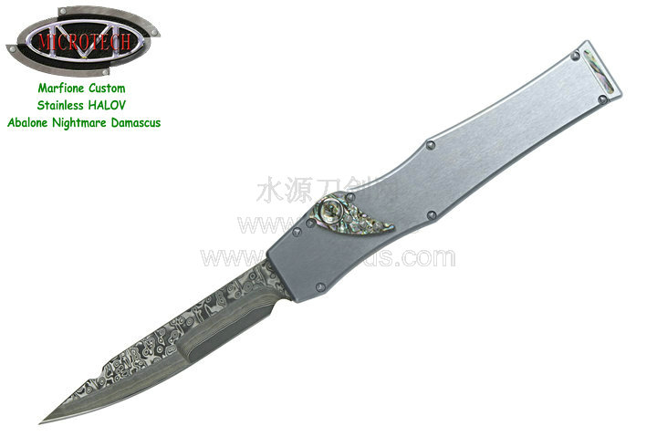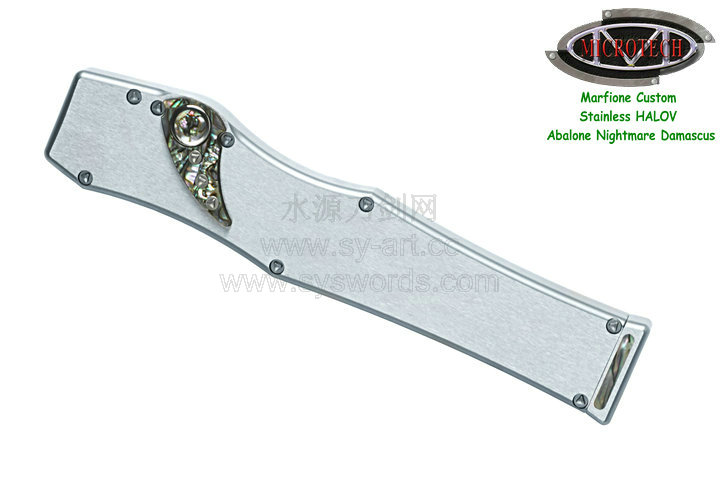 2010年微技术延续了HALO系列的传说,推出了HALO5,剑标系列由安东尼·Marifone亲自制作,不锈钢柄镶嵌鲍鱼壳,大马士革夜魔刃刃打磨更显尊贵,此款HALO是不可多得的收藏佳品