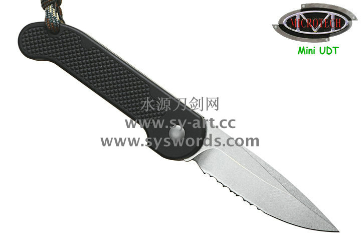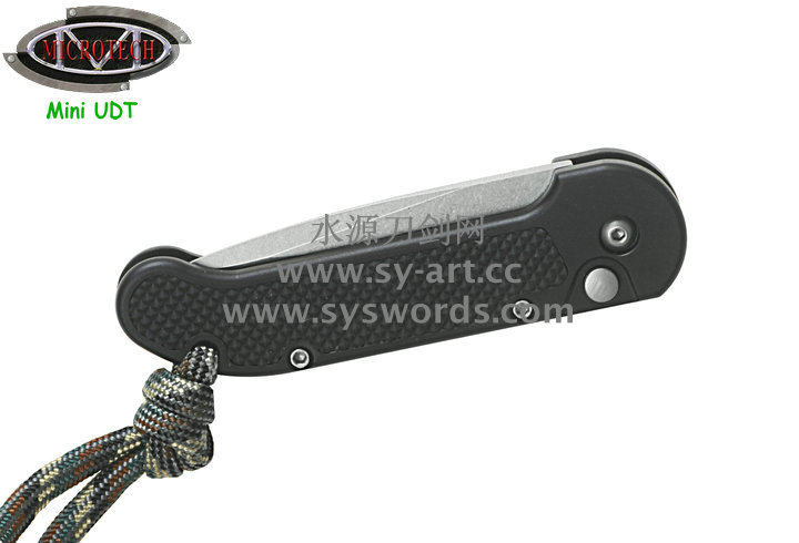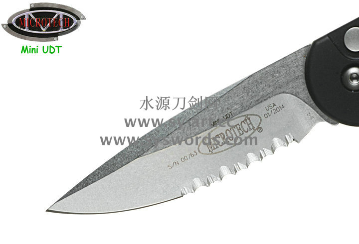 Microtech 刃厂最受欢迎的侧弹式弹簧刃,在2010以全新造型搭配先进制刃技术重新上市。 UDT ( Underwater Demolition Team )没有华丽的装饰与配件,仅沿用原始款式的外型结构另外新增了背夹与6061-T6 铝合金防滑握柄;强悍又厚实的结构与和扎实有力的开启弹力出刃和出刃扎实有力