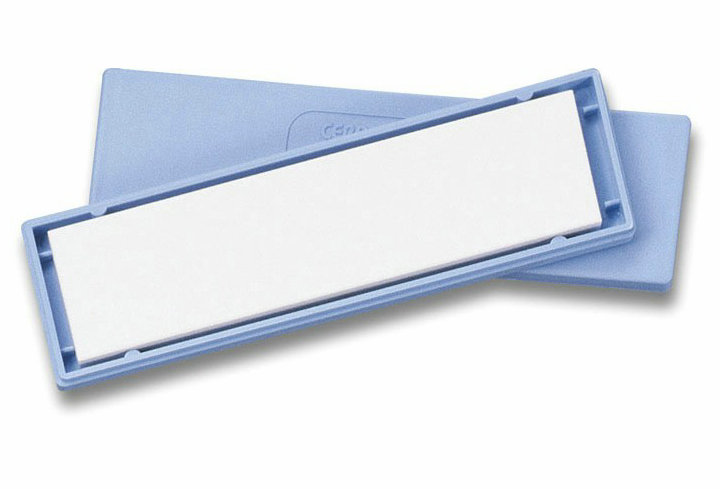 Available in Fine (pictured) Medium or Ultrafine grits (see related items), each 2"x8"x1/5" stone comes packaged in a rigid polymer storage case complete with non-skid rubber feet for tabletop use. As with all of Spyderco's ceramic stones, use our bench stones dry without lubricants or oils. To clean: wash with fresh water and scrub metal particles from the stones with a plastic scouring pad and abrasive powered cleanser.