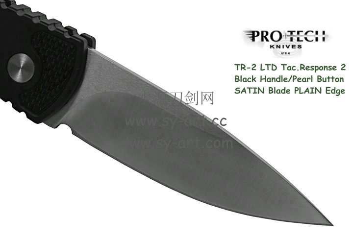 类 型: 侧跳 型 号: TR-2LTD 全 长: 193mm 刃 长: 76mm 柄 长: 114mm 刃 材: 154cm 硬 度:59-60HRC 刃 厚: 3mm 柄 材: T6-6061 Anodized Aluminum航空铝 重 量: 96g Another great addition to the Tactical Response line! Tanto bead blast 154-CM blade (plain) and a black anodized T-6 6061 body with knurling detailing on the bolster and butt of the knife. TiNi (black) pocket clip. Totally dependable, super fast action, lightweight, great feel.