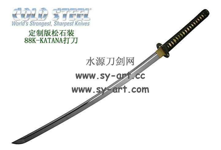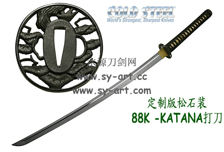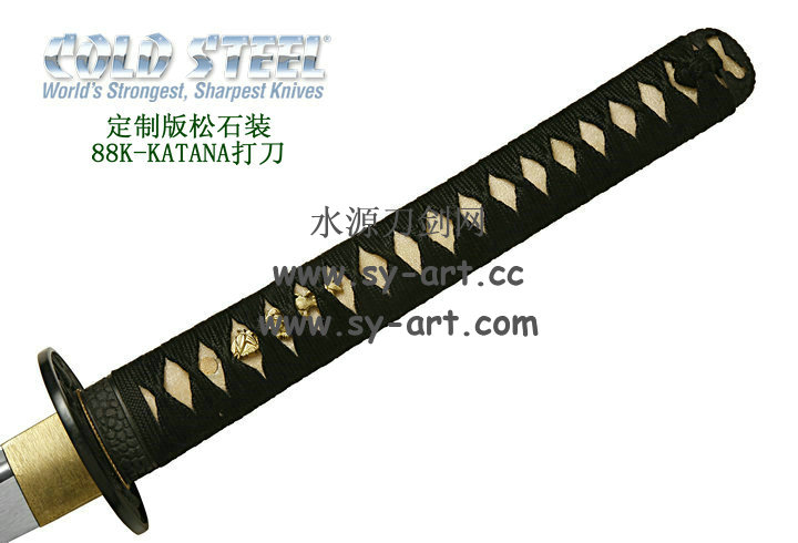 Cold Steel刃厂一直坚持使用传统材料来制造日本刃,护手(镡)和柄头(头)都用镍银铸成,而且做工考究。黄铜鞘口(鲤口)是用全手工制作抛光而成。手柄上包裹的是真鲛皮,并且用黑线用传统十字交叉方式缠裹。刃刃都用1055高碳弹簧钢,由经验丰富的职业刃匠手工锻造打磨,按照传统日本铸刃方法制造而成。每一把刃都配有一个黑色漆面木鞘。
