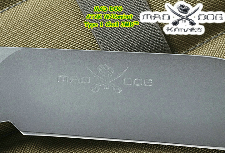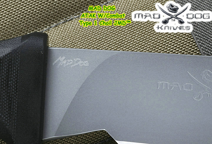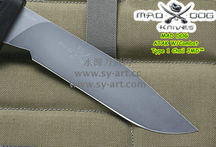 所有Mad Dog刃子及刃鞘系统都是以手工制作而成。Mad Dog钢材刃都是使用一种叫Starrett 496-O1的高碳工具钢,最独特的是它的热处理方式,先经过硬化(Hardened)然后再选择性回火(selectively tempered)而成。每个部分的热处理都不一样,刃锋部分的硬度是63-67HRC,在刃背部分则是50-55HRC,刃尖部分是59-61HRC,手柄部分48-52HRC,整刃分为4个部分处理,这种科学的方法成为分段热处理。这种方法可以使刃具既有很高的硬度又有较强的韧性,劈砍,穿刺,切割,撬砸等,能适应各种高强度工作。