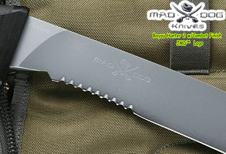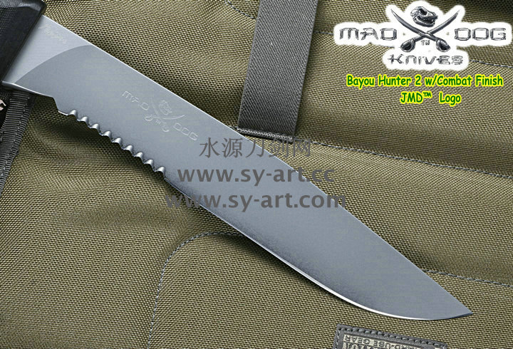Mad Dog 刃具使用 Starrett 496-01 高碳工具钢,经过非常专业的淬水-挤压-回火热处理流程,使每片刃刃达到理想的层变硬度:刃锋硬度为HRC62-63,具有非常出色的刃锋保持性;而刃尖、刃脊和柄芯的硬度则在HRC50-54,保持良好的弹性,防止刃尖折断,并且增强了刃刃的韧性。除此之外,所有的刃刃都经过电镀处理,加上厚厚一层坚硬的铬合金,具有很强的抗腐蚀和磨损能力。