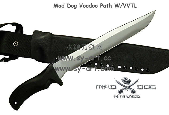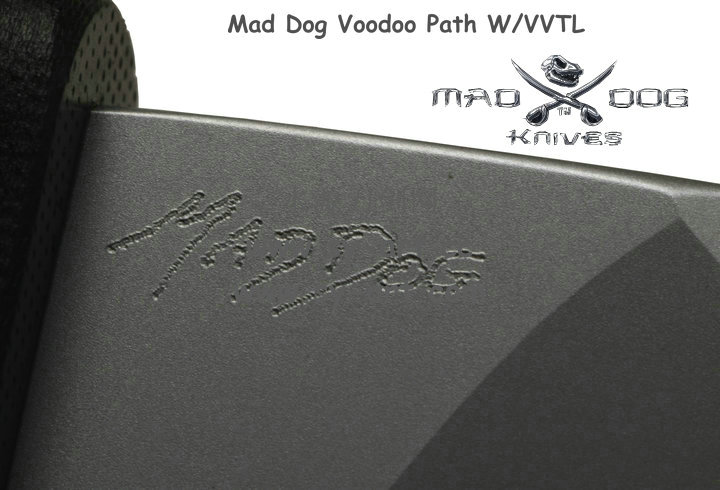 所有Mad Dog刃子及刃鞘系统都是以手工制作而成。Mad Dog钢材刃都是使用一种叫Starrett 496-O1的高碳工具钢,最独特的是它的热处理方式,先经过硬化(Hardened)然后再选择性回火(selectively tempered)而成。每个部分的热处理都不一样,刃锋部分的硬度是63-67HRC,在刃背部分则是50-55HRC,刃尖部分是59-61HRC,手柄部分48-52HRC,整刃分为4个部分处理,这种科学的方法成为分段热处理。这种方法可以使刃具既有很高的硬度又有较强的韧性,劈砍,穿刺,切割,撬砸等,能适应各种高强度工作。