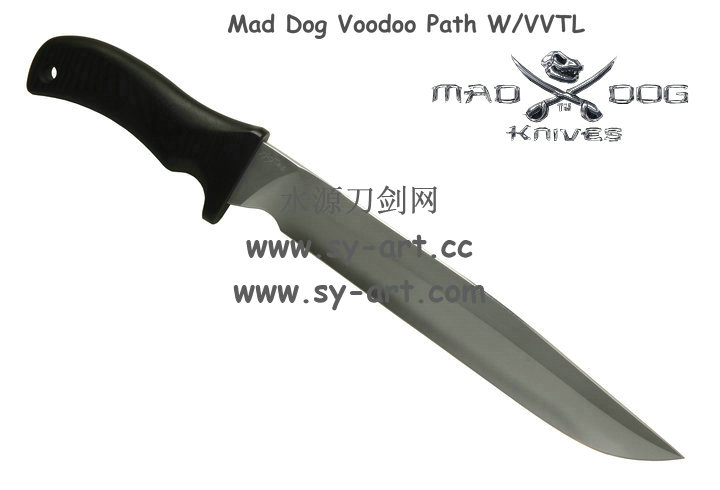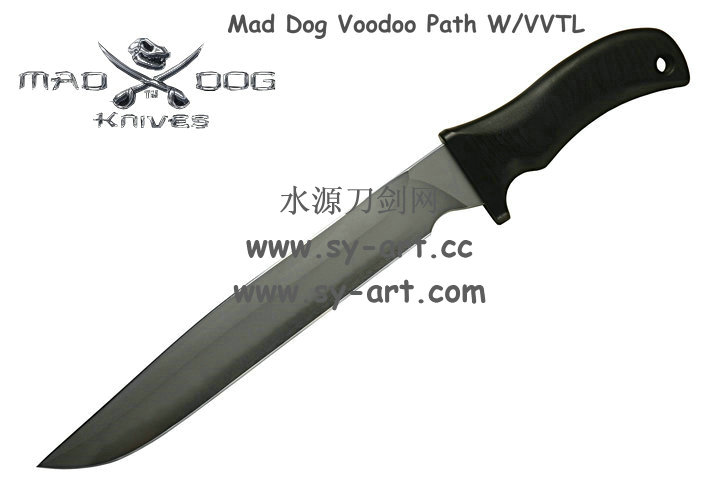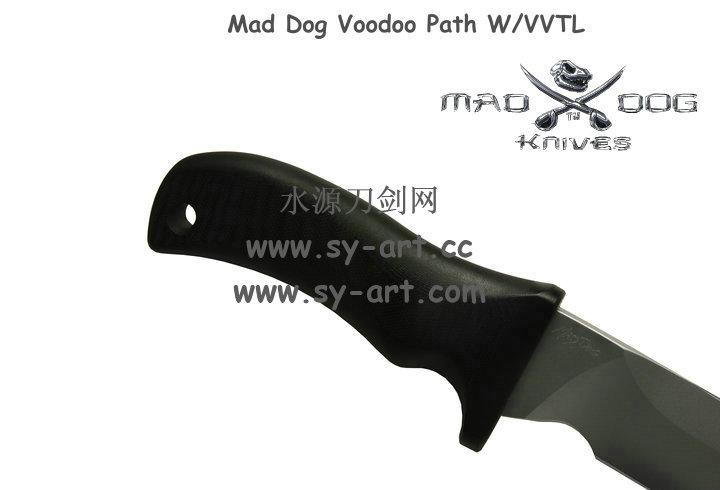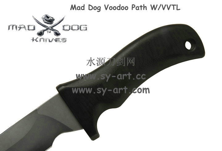 它的手柄符合人体工程学设计,把握极其舒适称手。食指凹槽让使用者即使看不见也能凭手感找到握刃的位置。材料使用特殊的玻璃纤维与环氧基树脂合成来做刃的握柄。此种特殊材质每一平方英寸可承受79000磅的压力(约3600公斤),可以轻易地承受0.45口径子弹的冲击。因此Mad Dog刃的握柄就算很严苛的使用也不会造成损害。此种握柄材质同时也提供了极好的绝缘,每0.001吋可承受1000伏特的电压,因而可以保护持刃者不会在使用刃具时遭受电击。另外这种握柄材质也几乎不受化学物质的渗透及侵蚀。
