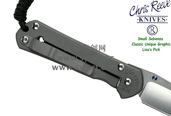 当chrisreeve完成了全钢一体刃的制作后,兴趣就转到如果把一体刃的坚固细致精神延续到一把Reeve折刃上。当chrisreeve看到线锁结构后,即对线索结构的简单实用而认可,又不能接受线锁过于薄弱。Reeve仔细分析了钢线锁存在的问题,一是钢线锁太厚会失去弹性而无法完成弯曲加锁的功能,二是钢线锁太厚解锁会很困难。找到了问题的症结,Reeve就着手选择可以避免上述问题的线锁材料,而钛合金正是最佳材料(6铝4钒钛合金90%Ti、 6%Al4%V、)。因为钛合金经过合适的热处理,具有很好的记忆性和弹性,能记忆确定弯曲的弧度,能很顺滑地完成加厚线锁上锁解锁这一概念的机械动作。但只加厚线锁Reeve并不满足,因为热处理后的钛合金硬度仍然不能和钢相比,于是Reeve还在钛锁片的顶端,镶嵌了超硬质合金,来确保线锁到达耐磨损的极限。这个小细节,是所有喜欢SEBENZA的朋友必须特别注意的,也是体会Reeve折刃过人之处的重点。