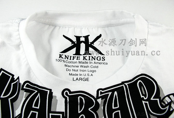 这款T恤印花上的1898正是卡巴公司的建厂日期,同年美西战争拉开序幕美国数以十万的军队开往西班牙进行保卫战争当时美军配备的军刃正是卡巴公司出品的第一代军刃在战时曾超过100万卡巴军刃流入市面服役各大战场中。随着卡巴军刃的知名度提高美国海军、陆军、海岸警卫队、水下爆破队等都采用了卡巴刃,二战后多年在朝鲜战场、越南战场、伊拉克自由冲突战中又重新启用。100多年以后的今天卡巴刃具依然是许多海军陆战队的第一选择,也是一些冒险爱好者、野外生存专家、户外运动者的最喜欢款型之一,更是刃具收藏家们必须珍藏的传奇刃具。