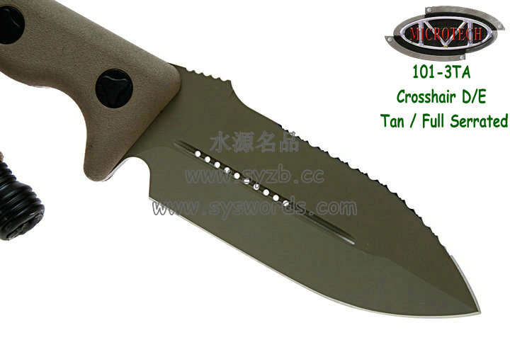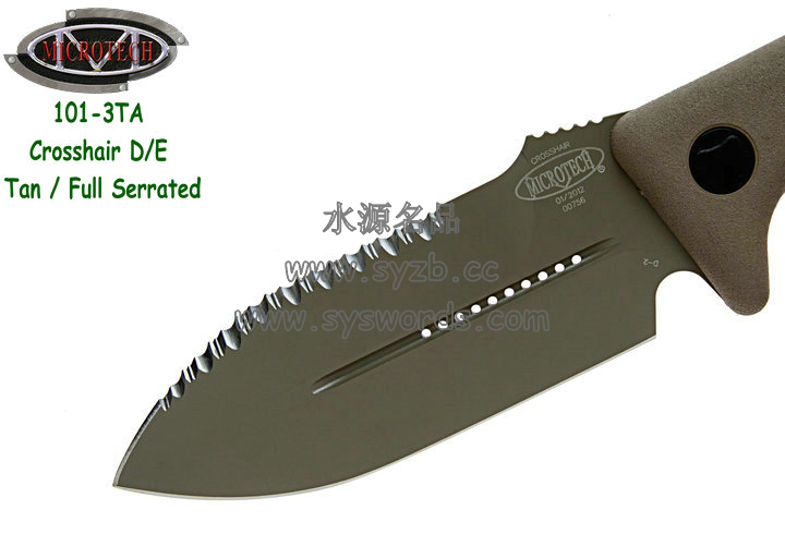 类 型: 直刃 型 号: Crosshair; 全 长: 260mm 刃 长: 126mm 刃 材: D2 硬 度: 59-60HRC 刃 厚: 5.2mm 表 面: Melonite Coated 柄 长: 134mm 柄 材: Textured Polymer Scales高分子聚合物 重 量: 332g 不含鞘452g含鞘 原产地: 美国 刃鞘:K鞘