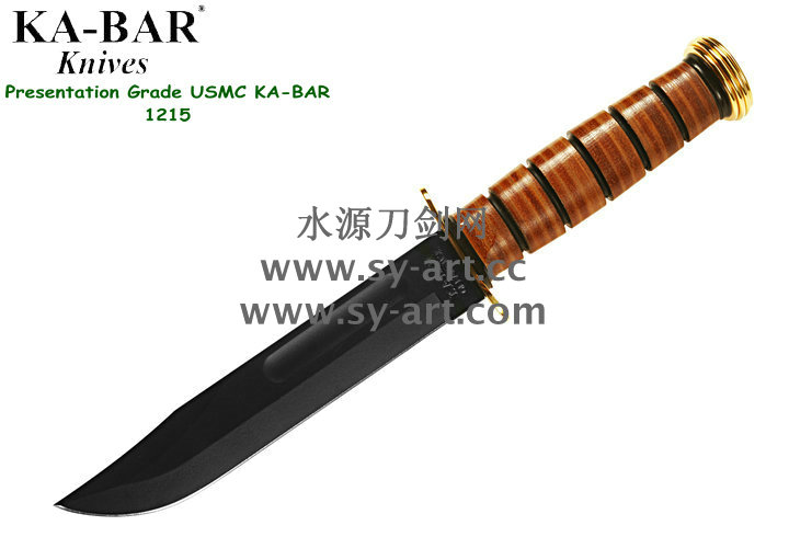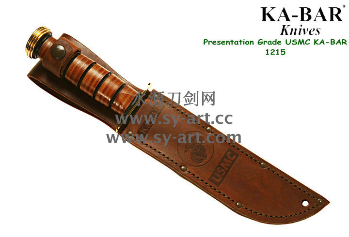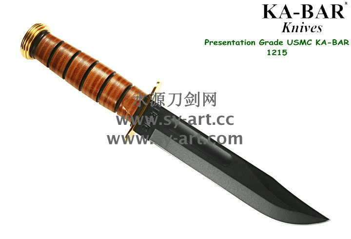 美国首都华盛顿广场上,有一座巨型雕像,五名海军陆战队的士兵正奋力插起一面美国国旗(刃上LOGO画象)。这座雕像是根据美联社记者乔?罗森塔尔拍摄的一张二战著名照片塑成的,而这张照片表现的正是硫磺岛上的血战。历史悠久之刃厂,着名於军刃、刺刃、格斗刃等,美国海军陆战队在韩战、越战时采用之军刃。KA BAR Knives, Inc 总公司Alcas Corporation是国际名刃具工厂,世界知名出品有U.S.M.C.战术刃、打猎刃、鱼刃、收藏刃等… KA BAR 刃厂总部成立于美国纽约,曾於1998年庆祝其公司成立100周年。Ka-bar刃厂以前叫做Union Razor Co.,被称为Ka-bar 是由于一位猎人的推荐信函。这位猎人在打猎的途中遇到了熊,子弹用尽的他只好拿起了他那由Union Razor Co.所造的高品质猎刃来与熊搏斗,因而保住了性命,他在信上写到这把刃可以杀熊(Kill a bear ),但是因为这位猎人的教育层度不高,将它写成Kil a bar,后来又被人们缩写成Ka-bar,因此Ka-bar这个名字便被大家所传颂,甚至比Union更有名气,因此在1951年时,Union Razor公司正式改名为Ka-bar ,但在此之前Union公司便已在他们生产的刃上打上Ka-bar的标志。自1942年二次大战爆发不久,KA BAR刃厂提交首批軍刃與U.S.M.C. (美国海军陆战队) 队员使用。军方于3年后,公元1945年确认其军刃之可靠性能,而把该刃命名为U.S.M.C. Fighting / Utility Knife "美国海军陆战格斗及多用途刃",而其它武装部队也开始被建议采用此刃。KABAR生产了共超过一百万把军刃,曾在供不应求之情况下,KABAR刃厂直接受权予其他生产商生产其他类型之军刃给各军队使用,及在刃上印上其他生产商之名称,但出厂的每一把刃也被认为名符其实是KABAR军刃 ! 是因为基於它的质量和耐用性,获很多使用者对此刃之信赖,作为日常工作之用 -- 例如修理装置、挖狐洞、磨利帐蓬支柱、开罐头和最重要是在战乱时代作为一种防身利器。KABAR 军刃的知名度於二次大战後大大提高,其後於韩,越战,沙漠风暴等战争中也被积极采用。 KA-BAR以生产直柄刃闻名于世。美国KA-BAR卡巴公司少量新刃型号在公司台湾基地生产,但基本所有产品都在美国基地生产。美国KA-BAR刃具公司产品全部从美国进口。军警人员采用。1800年代末期,纽约西部及宾州北部地区。当时有超过30家以上刃厂的规模。但随着不断地淘汰及经济上的冲击,目前只硕果仅存了少部份质优的厂商。而KA-BAR刃具公司就是其中之一。直到1996年经过纽约州奥林市的阿卡斯公司机(Alcas Corporation)重整。KA-BAR刃厂现在在产品的制作、研发、创新及客服上都更广得回响,产品优越品质为大众所认同。以阿卡斯角族的决心魄力,KA-BAR刃厂必能更上一层楼。