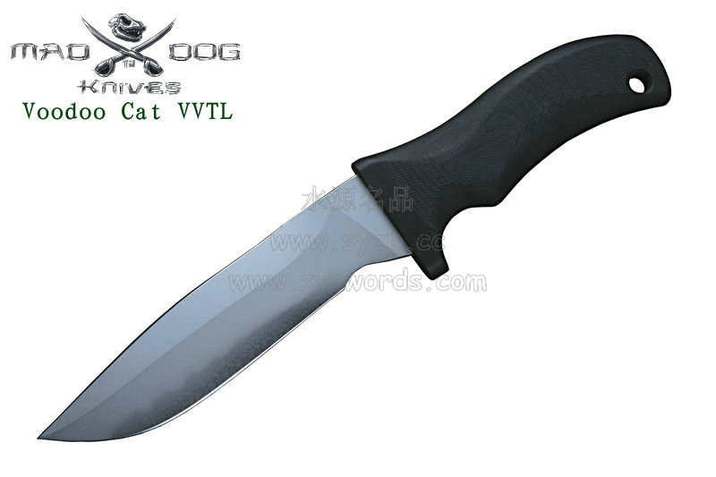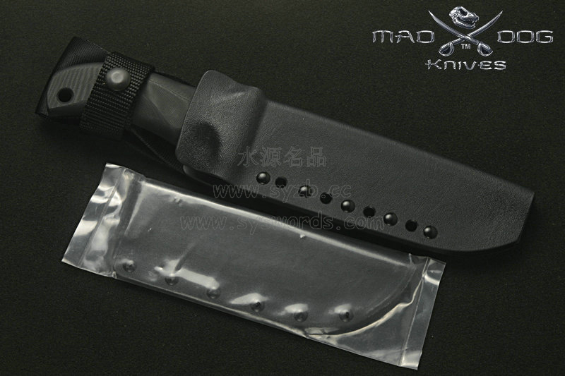 所有Mad Dog刃子及刃鞘系统都是以手工制作而成。Mad Dog钢材刃都是使用一种叫Starrett 496-O1的高碳工具钢,最独特的是它的热处理方式,先经过硬化(Hardened)然后再选择性回火(selectively tempered)而成。每个部分的热处理都不一样,刃锋部分的硬度是63-67HRC,在刃背部分则是50-55HRC,刃尖部分是59-61HRC,手柄部分48-52HRC,整刃分为4个部分处理,这种科学的方法成为分段热处理。这种方法可以使刃具既有很高的硬度又有较强的韧性,劈砍,穿刺,切割,撬砸等,能适应各种高强度工作。