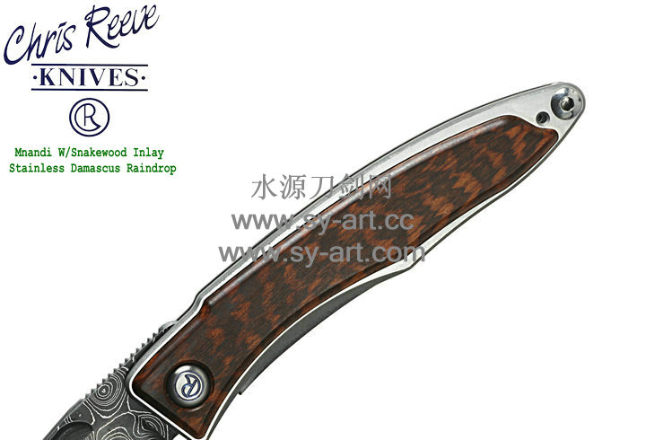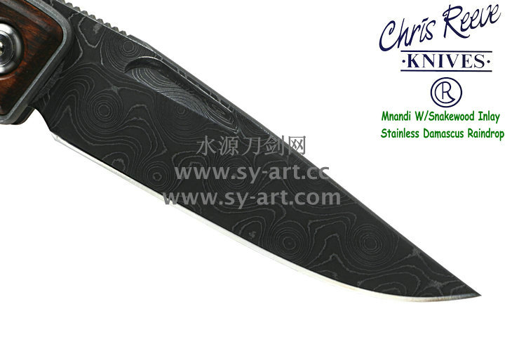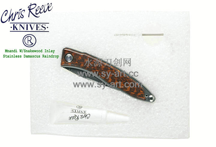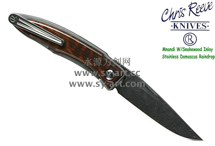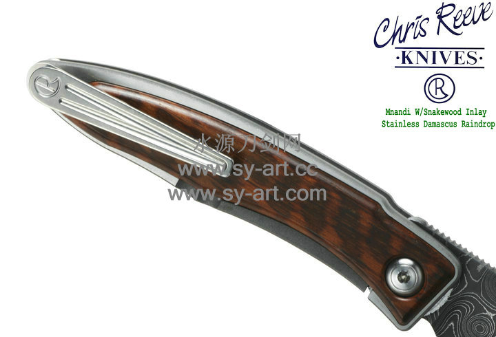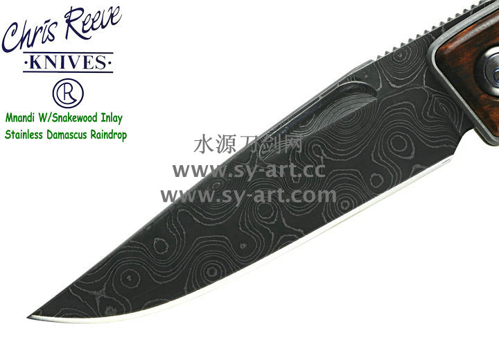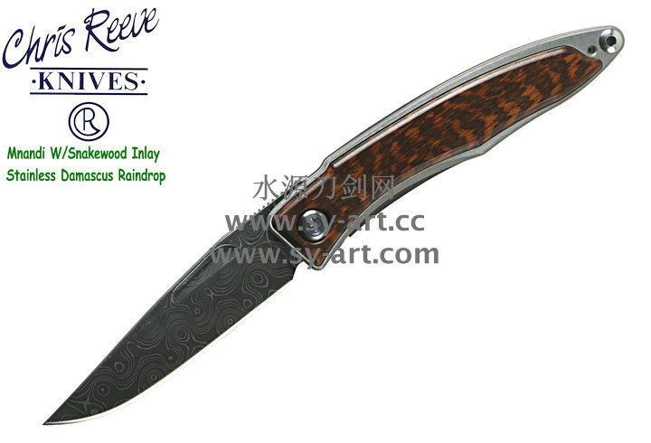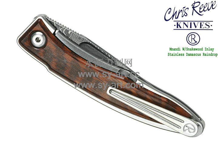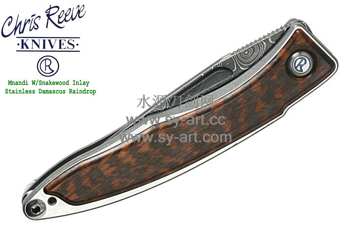 Chris Reeve 克里斯里夫Mnandi W/Snakewood Inlay Stainless Damascus Raindrop麦南迪蛇纹木镶嵌大马士革刃片 绅士折刃