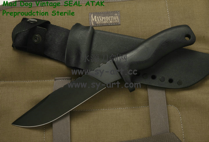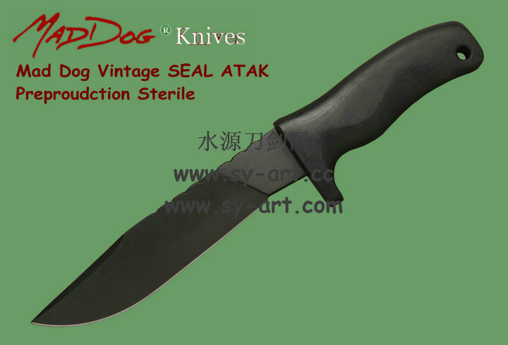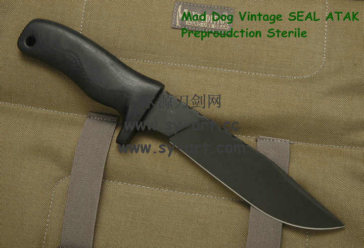凯文的工作室成立于1980年,位于美国的亚利桑那州,品牌的闻名是源自一次刃具的测试。1992年美国西海岸警卫队和海豹部队联合举行了一次军事演习(West Coast SEALs)同时也做了一次武器装备上的极端测试。在刃具当中测试中很多美国的大品牌都参与进来,但是只有Maddog表现最佳。很多刃具都有各式各样的残破,唯独疯狗通过测试后完整如初。当时的型号就是公司最知名的型号ATAK。同时它也是美国海军(U.S Navy Sole Source Justification) 刃具备测试的第一名。