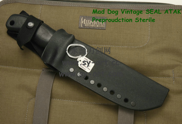 凯文先生所有Mad Dog刃子及刃鞘系统都是以手工制作而成。没有工厂,没有学员,甚至没有帮手,全部都是凯文先生亲力亲为,由于年事已高,致使它的东西存世量非常少。他不做任何广告,也不做商业推广。很多知名的刃厂和商家,要求与他合作,出品各式各样的版本,都被他拒绝了,凯文先生的理由很简单,我要保持自己的风格,做我自己认为完美的刃,还要保证每一把刃的质量。凭着对刃具的热爱和执着,加上几十年的专业经验,堪称战术刃之王。完美的产品加上稀缺的行情,令疯狗战术刃成为了每个爱刃人士的梦想!