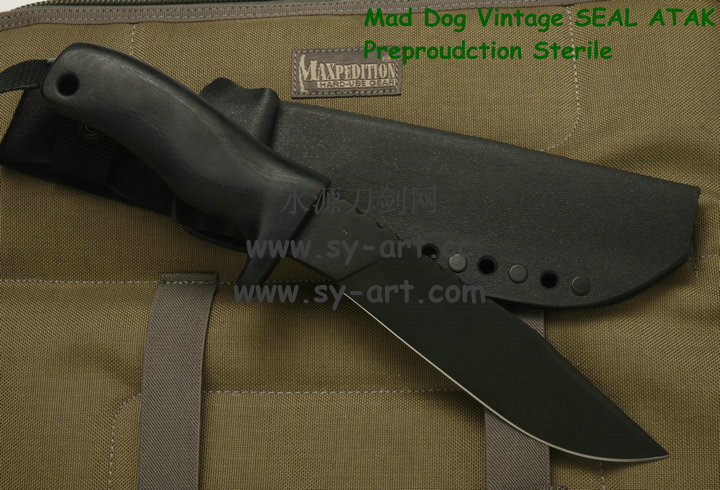 所有Mad Dog刃子及刃鞘系统都是以手工制作而成。Mad Dog钢材刃都是使用一种叫Starrett 496-O1的高碳工具钢,最独特的是它的热处理方式,先经过硬化(Hardened)然后再选择性回火(selectively tempered)而成。每个部分的热处理都不一样,刃锋部分的硬度是63-67HRC,在刃背部分则是50-55HRC,刃尖部分是59-61HRC,手柄部分48-52HRC,整刃分为4个部分处理,这种科学的方法成为分段热处理。这种方法可以使刃具既有很高的硬度又有较强的韧性,劈砍,穿刺,切割,撬砸等,能适应各种高强度工作。
