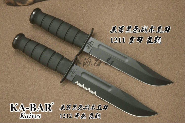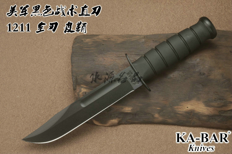 类 型: 直刃 型 号: 1211 全 长: 298.45mm 刃 长: 177.8mm 刃 材: 1095 Cro-Van 硬 度: 56-58HRC 刃 厚: 4.2mm 表 面: 非反光黑色环氧涂层 柄 长: 120.65mm 柄 材: Kraton G 弹性防滑 重 量: 304g 原产地: 刃在美国生产 套在墨西哥生产 历史悠久之刃厂,着名於军刃、刺刃、格斗刃等,美国海军陆战队在韩战、越战时采用之军刃。KA BAR Knives, Inc 总公司Alcas Corporation是国际名刃具工厂,世界知名出品有U.S.M.C.战术刃、打猎刃、鱼刃、收藏刃等… KA BAR 刃厂总部成立于美国纽约,曾於1998年庆祝其公司成立100周年。 Ka-bar刃厂以前叫做Union Razor Co.,被称为Ka-bar 是由于一位猎人的推荐信函。这位猎人在打猎的途中遇到了熊,子弹用尽的他只好拿起了他那由Union Razor Co.所造的高品质猎刃来与熊搏斗,因而保住了性命,他在信上写到这把刃可以杀熊(Kill a bear ),但是因为这位猎人的教育层度不高,将它写成Kil a bar,后来又被人们缩写成Ka-bar,因此Ka-bar这个名字便被大家所传颂,甚至比Union更有名气,因此在1951年时,Union Razor公司正式改名为Ka-bar ,但在此之前Union公司便已在他们生产的刃上打上Ka-bar的标志。 自1942年二次大战爆发不久,KA BAR刃厂提交首批軍刃與U.S.M.C. (美国海军陆战队) 队员使用。军方于3年后,公元1945年确认其军刃之可靠性能,而把该刃命名为U.S.M.C. Fighting / Utility Knife "美国海军陆战格斗及多用途刃",而其它武装部队也开始被建议采用此刃。 KABAR生产了共超过一百万把军刃,曾在供不应求之情况下,KABAR刃厂直接受权予其他生产商生产其他类型之军刃给各军队使用,及在刃上印上其他生产商之名称,但出厂的每一把刃也被认为名符其实是KABAR军刃 ! 是因为基於它的质量和耐用性,获很多使用者对此刃之信赖,作为日常工作之用 -- 例如修理装置、挖狐洞、磨利帐蓬支柱、开罐头和最重要是在战乱时代作为一种防身利器。KABAR 军刃的知名度於二次大战後大大提高,其後於韩,越战,沙漠风暴等战争中也被积极采用。 KA-BAR以生产直柄刃闻名于世。美国KA-BAR卡巴公司少量新刃型号在公司台湾基地生产,但基本所有产品都在美国基地生产。美国KA-BAR刃具公司产品全部从美国进口。军警人员采用。 1800年代末期,纽约西部及宾州北部地区。当时有超过30家以上刃厂的规模。但随着不断地淘汰及经济上的冲击,目前只硕果仅存了少部份质优的厂商。而KA-BAR刃具公司就是其中之一。直到1996年经过纽约州奥林市的阿卡斯公司机(Alcas Corporation)重整。KA-BAR刃厂现在在产品的制作、研发、创新及客服上都更广得回响,产品优越品质为大众所认同。以阿卡斯角族的决心魄力,KA-BAR刃厂必能更上一层楼。