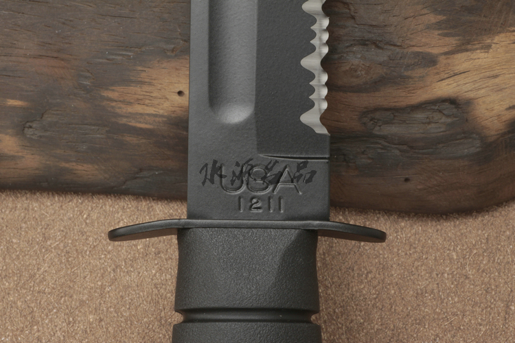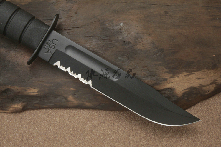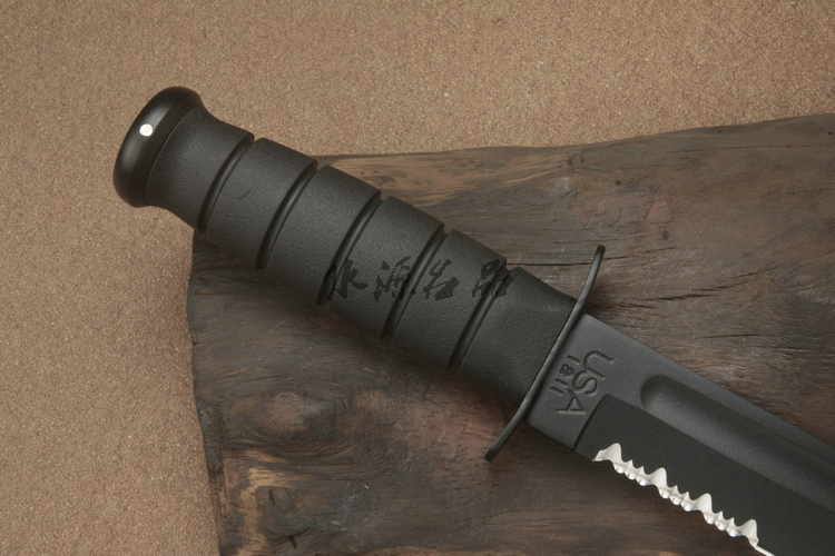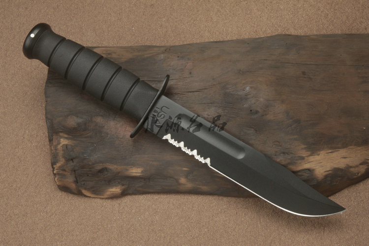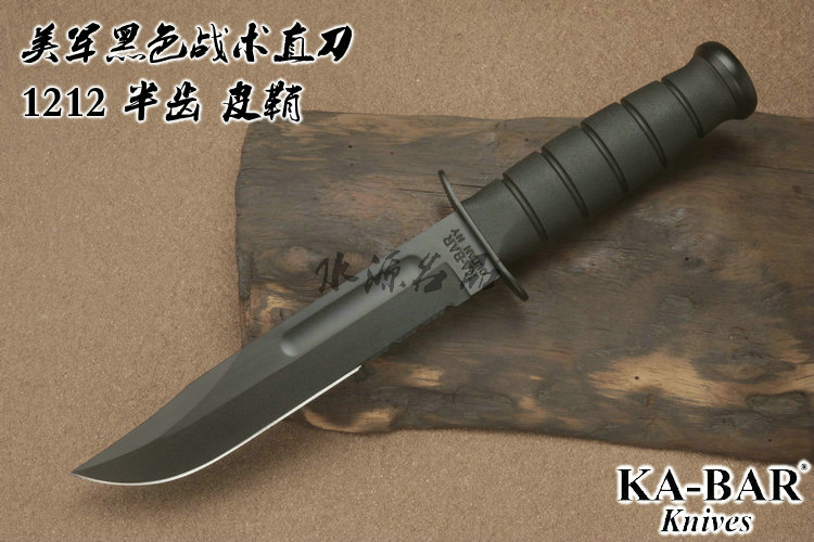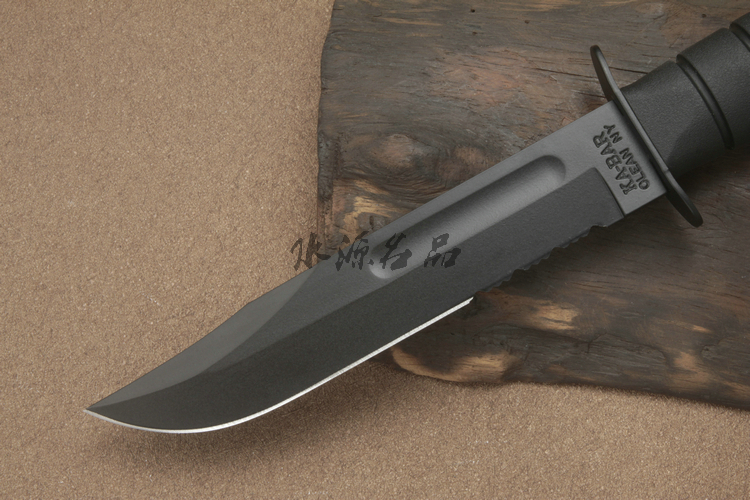 类 型: 直刃 型 号: 1212 全 长: 298.45mm 刃 长: 177.8mm 刃 材: 1095 Cro-Van 硬 度: 56-58HRC 刃 厚: 4.2mm 表 面: 非反光黑色环氧涂层 柄 长: 120.65mm 柄 材: Kraton G 弹性防滑 重 量: 304g 原产地: 刃在美国生产 套在台湾生产 历史悠久之刃厂,着名於军刃、刺刃、格斗刃等,美国海军陆战队在韩战、越战时采用之军刃。KA BAR Knives, Inc 总公司Alcas Corporation是国际名刃具工厂,世界知名出品有U.S.M.C.战术刃、打猎刃、鱼刃、收藏刃等… KA BAR 刃厂总部成立于美国纽约,曾於1998年庆祝其公司成立100周年。 Ka-bar刃厂以前叫做Union Razor Co.,被称为Ka-bar 是由于一位猎人的推荐信函。这位猎人在打猎的途中遇到了熊,子弹用尽的他只好拿起了他那由Union Razor Co.所造的高品质猎刃来与熊搏斗,因而保住了性命,他在信上写到这把刃可以杀熊(Kill a bear ),但是因为这位猎人的教育层度不高,将它写成Kil a bar,后来又被人们缩写成Ka-bar,因此Ka-bar这个名字便被大家所传颂,甚至比Union更有名气,因此在1951年时,Union Razor公司正式改名为Ka-bar ,但在此之前Union公司便已在他们生产的刃上打上Ka-bar的标志。 自1942年二次大战爆发不久,KA BAR刃厂提交首批軍刃與U.S.M.C. (美国海军陆战队) 队员使用。军方于3年后,公元1945年确认其军刃之可靠性能,而把该刃命名为U.S.M.C. Fighting / Utility Knife "美国海军陆战格斗及多用途刃",而其它武装部队也开始被建议采用此刃。 KABAR生产了共超过一百万把军刃,曾在供不应求之情况下,KABAR刃厂直接受权予其他生产商生产其他类型之军刃给各军队使用,及在刃上印上其他生产商之名称,但出厂的每一把刃也被认为名符其实是KABAR军刃 ! 是因为基於它的质量和耐用性,获很多使用者对此刃之信赖,作为日常工作之用 -- 例如修理装置、挖狐洞、磨利帐蓬支柱、开罐头和最重要是在战乱时代作为一种防身利器。KABAR 军刃的知名度於二次大战後大大提高,其後於韩,越战,沙漠风暴等战争中也被积极采用。 KA-BAR以生产直柄刃闻名于世。美国KA-BAR卡巴公司少量新刃型号在公司台湾基地生产,但基本所有产品都在美国基地生产。美国KA-BAR刃具公司产品全部从美国进口。军警人员采用。 1800年代末期,纽约西部及宾州北部地区。当时有超过30家以上刃厂的规模。但随着不断地淘汰及经济上的冲击,目前只硕果仅存了少部份质优的厂商。而KA-BAR刃具公司就是其中之一。直到1996年经过纽约州奥林市的阿卡斯公司机(Alcas Corporation)重整。KA-BAR刃厂现在在产品的制作、研发、创新及客服上都更广得回响,产品优越品质为大众所认同。以阿卡斯角族的决心魄力,KA-BAR刃厂必能更上一层楼。