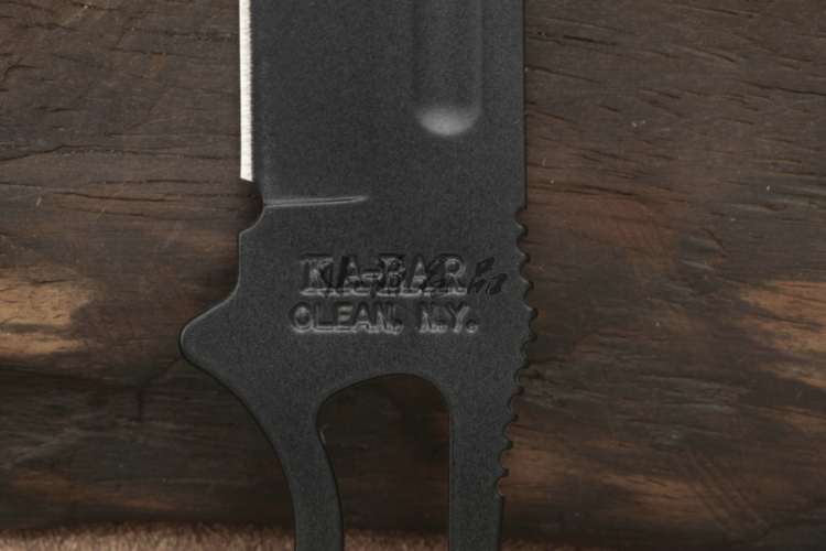 类 型: 直刃 型 号: 1117 全 长: 200mm 刃 长: 98mm 刃 材: 1095 Cro-Van 硬 度: 56-58HRC 刃 厚: 3.175mm 表 面: 非反光黑色环氧涂层 开刃角度: 20度 柄 材: 1095 Cro-Van 重 量: 68g 原产地: 刃在美国生产 套在台湾生产 历史悠久之刃厂,着名於军刃、刺刃、格斗刃等,美国海军陆战队在韩战、越战时采用之军刃。KA BAR Knives, Inc 总公司Alcas Corporation是国际名刃具工厂,世界知名出品有U.S.M.C.战术刃、打猎刃、鱼刃、收藏刃等… KA BAR 刃厂总部成立于美国纽约,曾於1998年庆祝其公司成立100周年。 Ka-bar刃厂以前叫做Union Razor Co.,被称为Ka-bar 是由于一位猎人的推荐信函。这位猎人在打猎的途中遇到了熊,子弹用尽的他只好拿起了他那由Union Razor Co.所造的高品质猎刃来与熊搏斗,因而保住了性命,他在信上写到这把刃可以杀熊(Kill a bear ),但是因为这位猎人的教育层度不高,将它写成Kil a bar,后来又被人们缩写成Ka-bar,因此Ka-bar这个名字便被大家所传颂,甚至比Union更有名气,因此在1951年时,Union Razor公司正式改名为Ka-bar ,但在此之前Union公司便已在他们生产的刃上打上Ka-bar的标志。 自1942年二次大战爆发不久,KA BAR刃厂提交首批軍刃與U.S.M.C. (美国海军陆战队) 队员使用。军方于3年后,公元1945年确认其军刃之可靠性能,而把该刃命名为U.S.M.C. Fighting / Utility Knife "美国海军陆战格斗及多用途刃",而其它武装部队也开始被建议采用此刃。 KABAR生产了共超过一百万把军刃,曾在供不应求之情况下,KABAR刃厂直接受权予其他生产商生产其他类型之军刃给各军队使用,及在刃上印上其他生产商之名称,但出厂的每一把刃也被认为名符其实是KABAR军刃 ! 是因为基於它的质量和耐用性,获很多使用者对此刃之信赖,作为日常工作之用 -- 例如修理装置、挖狐洞、磨利帐蓬支柱、开罐头和最重要是在战乱时代作为一种防身利器。KABAR 军刃的知名度於二次大战後大大提高,其後於韩,越战,沙漠风暴等战争中也被积极采用。 KA-BAR以生产直柄刃闻名于世。美国KA-BAR卡巴公司少量新刃型号在公司台湾基地生产,但基本所有产品都在美国基地生产。美国KA-BAR刃具公司产品全部从美国进口。军警人员采用。 1800年代末期,纽约西部及宾州北部地区。当时有超过30家以上刃厂的规模。但随着不断地淘汰及经济上的冲击,目前只硕果仅存了少部份质优的厂商。而KA-BAR刃具公司就是其中之一。直到1996年经过纽约州奥林市的阿卡斯公司机(Alcas Corporation)重整。KA-BAR刃厂现在在产品的制作、研发、创新及客服上都更广得回响,产品优越品质为大众所认同。以阿卡斯角族的决心魄力,KA-BAR刃厂必能更上一层楼。
