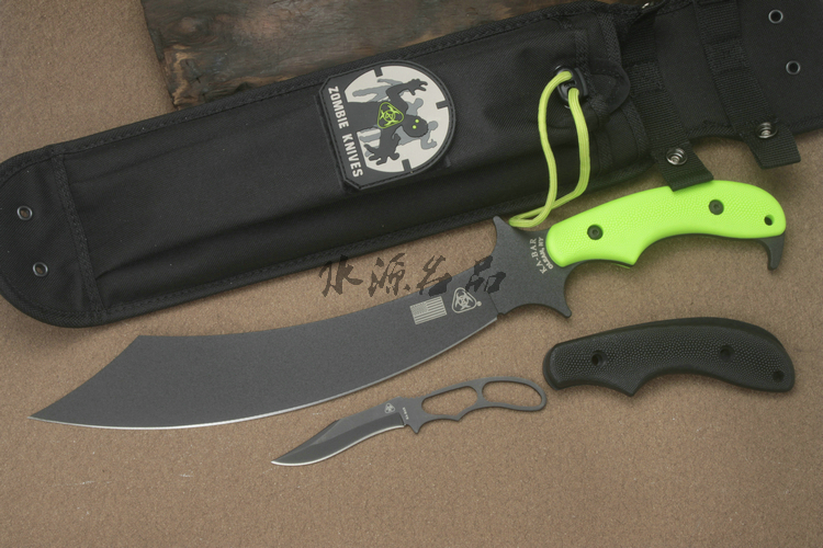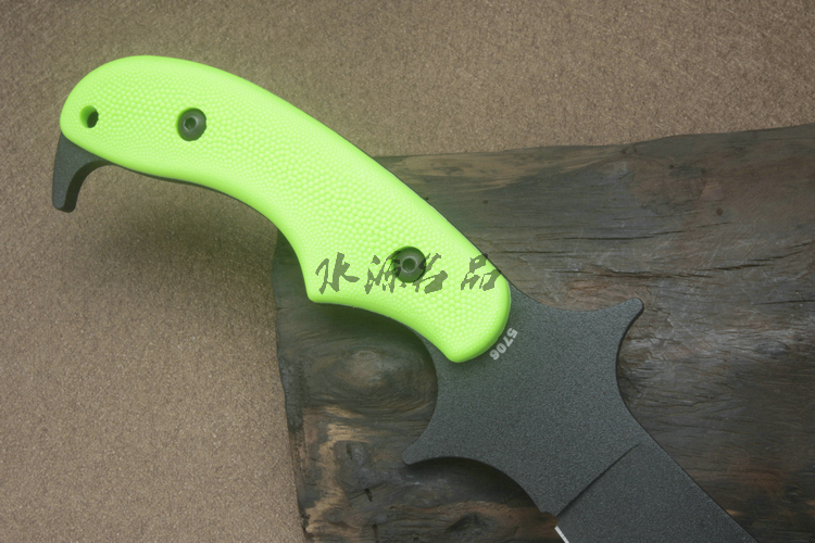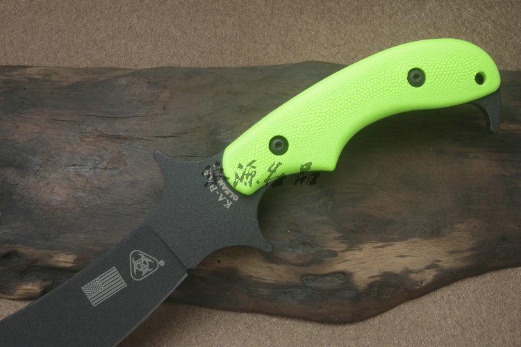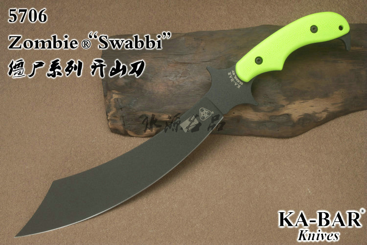 类 型: 直刃 型 号: 5706 全 长: 457mm 刃 长: 317mm 刃 材: 1095 Cro-Van 硬 度: 56-58HRC 刃 厚: 6.35mm 表 面: 非反光黑色环氧涂层 开刃角度: 20度 柄 材: GFN-PA66 可更换黑色手柄 重 量: 726g 原产地: 刃在美国生产 套在中国生产 这把卡巴水兵是为世界末日而准备的时尚,硬朗的刃具,美国制造!黑色涂层的半月形刃身拥有优雅的弯曲刃边和锐利的刃尖,众所周知海盗的弯曲形刃片都拥有极为出色的切削和劈砍能力。同样的锥形研磨方法让其拥有高品质日本刃具一样的深度打击能力,加长型刃尖为水兵提供极佳的穿透力,刃具设有的双边护手防止用户意外滑脱造成伤害。身采用黑色粉末涂层处理,消除反光柄增加刃具的防锈性能。 刃柄使用极富质感的绿色GFN-PA66材质构成,表层的球状凸起提供了更好的抓握力。刃柄尾端装备防脱挂钩,在把握时有效防止脱手情况,也可以作为悬挂支架。此外这款Zomstro还带有一种可替换的不反光黑色手柄。黑色重型尼龙护套前部拥有配备拉绳的装备袋,并赠送卡巴5699 魁星框架小直。随刃还赠送一条绿色绑腿带。 历史悠久之刃厂,着名於军刃、刺刃、格斗刃等,美国海军陆战队在韩战、越战时采用之军刃。KA BAR Knives, Inc 总公司Alcas Corporation是国际名刃具工厂,世界知名出品有U.S.M.C.战术刃、打猎刃、鱼刃、收藏刃等… KA BAR 刃厂总部成立于美国纽约,曾於1998年庆祝其公司成立100周年。 Ka-bar刃厂以前叫做Union Razor Co.,被称为Ka-bar 是由于一位猎人的推荐信函。这位猎人在打猎的途中遇到了熊,子弹用尽的他只好拿起了他那由Union Razor Co.所造的高品质猎刃来与熊搏斗,因而保住了性命,他在信上写到这把刃可以杀熊(Kill a bear ),但是因为这位猎人的教育层度不高,将它写成Kil a bar,后来又被人们缩写成Ka-bar,因此Ka-bar这个名字便被大家所传颂,甚至比Union更有名气,因此在1951年时,Union Razor公司正式改名为Ka-bar ,但在此之前Union公司便已在他们生产的刃上打上Ka-bar的标志。 自1942年二次大战爆发不久,KA BAR刃厂提交首批軍刃與U.S.M.C. (美国海军陆战队) 队员使用。军方于3年后,公元1945年确认其军刃之可靠性能,而把该刃命名为U.S.M.C. Fighting / Utility Knife "美国海军陆战格斗及多用途刃",而其它武装部队也开始被建议采用此刃。 KABAR生产了共超过一百万把军刃,曾在供不应求之情况下,KABAR刃厂直接受权予其他生产商生产其他类型之军刃给各军队使用,及在刃上印上其他生产商之名称,但出厂的每一把刃也被认为名符其实是KABAR军刃 ! 是因为基於它的质量和耐用性,获很多使用者对此刃之信赖,作为日常工作之用 -- 例如修理装置、挖狐洞、磨利帐蓬支柱、开罐头和最重要是在战乱时代作为一种防身利器。KABAR 军刃的知名度於二次大战後大大提高,其後於韩,越战,沙漠风暴等战争中也被积极采用。 KA-BAR以生产直柄刃闻名于世。美国KA-BAR卡巴公司少量新刃型号在公司台湾基地生产,但基本所有产品都在美国基地生产。美国KA-BAR刃具公司产品全部从美国进口。军警人员采用。 1800年代末期,纽约西部及宾州北部地区。当时有超过30家以上刃厂的规模。但随着不断地淘汰及经济上的冲击,目前只硕果仅存了少部份质优的厂商。而KA-BAR刃具公司就是其中之一。直到1996年经过纽约州奥林市的阿卡斯公司机(Alcas Corporation)重整。KA-BAR刃厂现在在产品的制作、研发、创新及客服上都更广得回响,产品优越品质为大众所认同。以阿卡斯角族的决心魄力,KA-BAR刃厂必能更上一层楼。