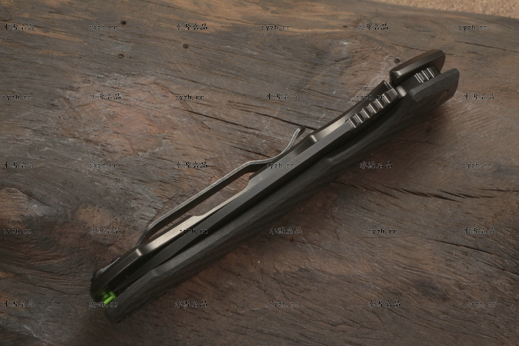 KVT滚珠轴承配合鱼鳍快开使得打开更加的顺滑,淬火钢加入钛柄使得整个刃身更为稳固。 S3VN钢材的刃刃经过DLC钻石涂层处理,表现的更为赏心悦目,时尚和精致的碳纤维外观,使他成为一把完美的EDC刃具。