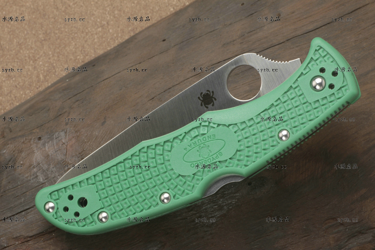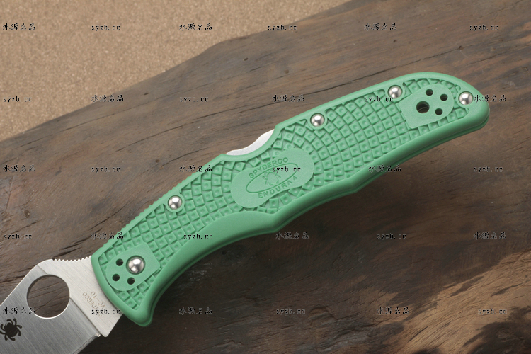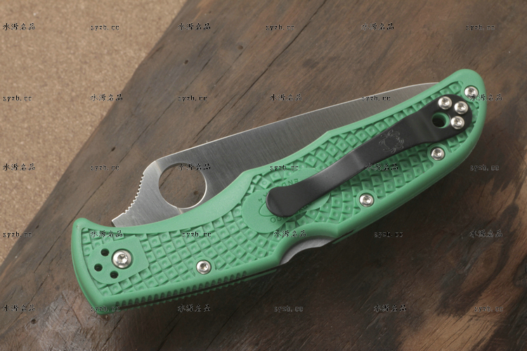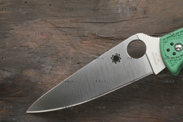 类 型: 折刃 型 号: C10FPGE 全 长: 222 mm 刃 长: 96 mm 闭合长度: 127 mm 刃 材: VG-10 硬 度: 60HRC 表 面: 缎面处理 刃 厚: 3mm 柄 长: 127 mm 柄 材: FRN 强化纤维尼龙 锁 型: 线锁 重 量: 103g 原产地: 美国 日本SEKI代工 Spyderco公司最受欢迎刃款之一,就是这把编号C10的「巅峰战士用刃(Endura)」,是刃具界最为人称道的收藏品。这把刃曾经在1993年由雷尼.哈林导演,席维斯史特龙主演的电影巅峰战士(Cliffhanger)中出现,名声因此更为远播。 SPYDERCO是个创立于美国科罗拉多州的刃具公司,它以前所未有的创新精神而闻名。现代名牌折刃中的单手开启功能、便于携带的卡子(CLIP)这些几乎成为现代高科技折刃标志的设计。正是SPYDERCO发明的! 如今不断创新的SPYDERCO公司已拥有数十项设计专利。其商标性的单手开启园孔造型不仅是最快捷顺畅的开启方式,而且这种独特的造型使人们一瞥之下就能认出那是SPYDERCO的产品。开启最为迅捷! SPYDERCO另一独特设计专利是SPYDERCO锯齿,这一发明是受到了鲨鱼牙齿的启发,SPYDERCO是不仅在业界最先成功使用锯齿刃!而且其与众不同的设计使之比普通的锯齿刃具有更强的切割力和更长的保持能力,它的切割力足以割开Kevlar-凯芙拉材料的防割手套! SPYDERCO另一强大优势就是它选用的钢材,它们从不用那些低成本、低性能的420或425系列的钢材。而它选用的钢材有AUS系列、ATS系列、440系列以及VG系列,甚至制刃界中的顶极材料CPM440V都是它们的常用材料。在美国Spyderco被称为“标准创立者(Standard Setter)”创新的设计,精良的选材,完美的工艺。 SPYDERCO的目标是:"无论你拥有多少刃具,其中必有SPYDERCO"