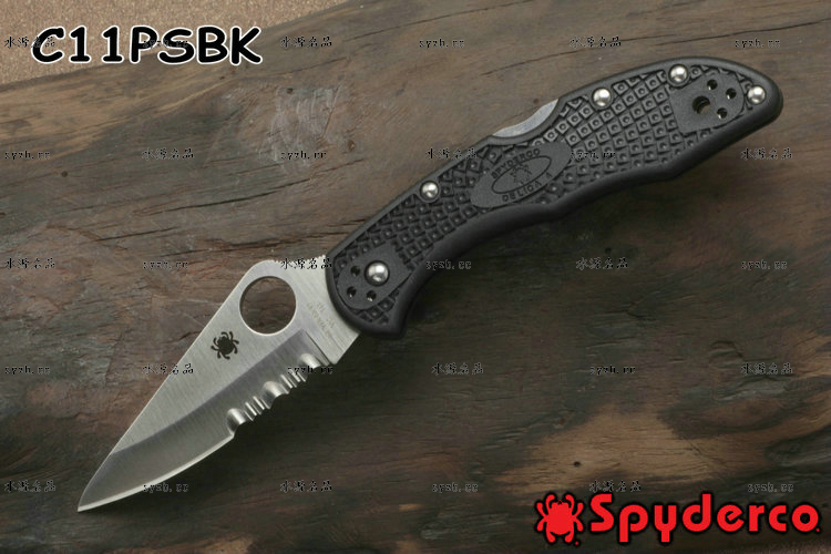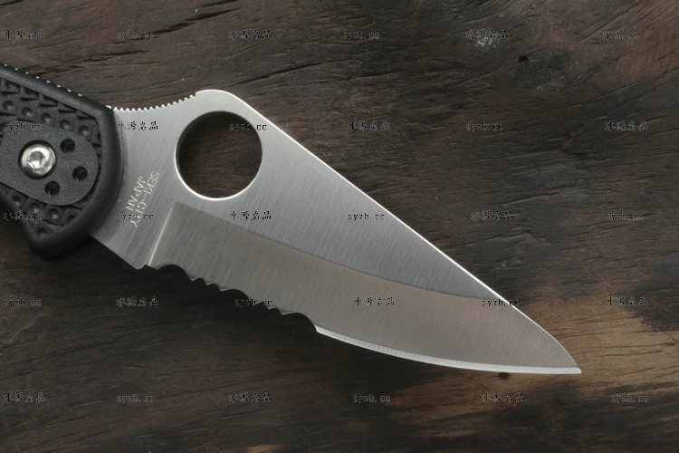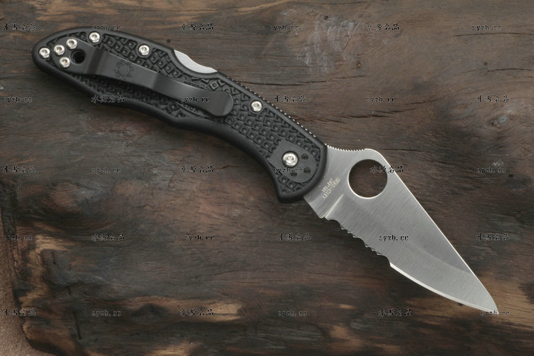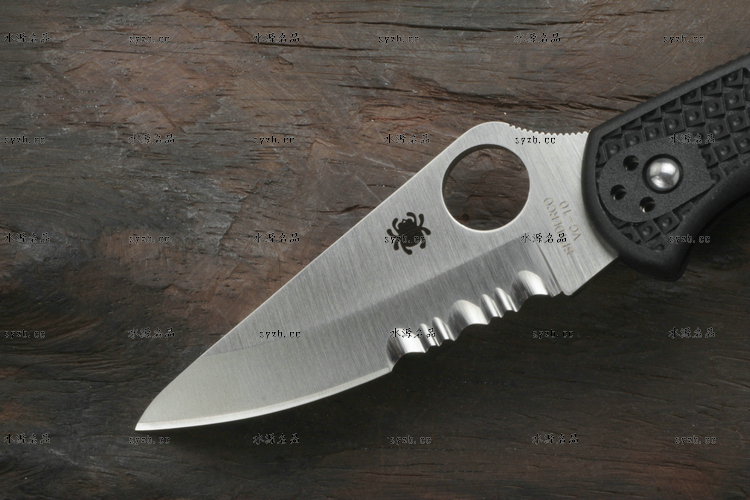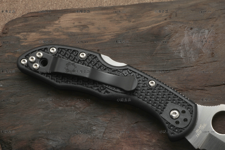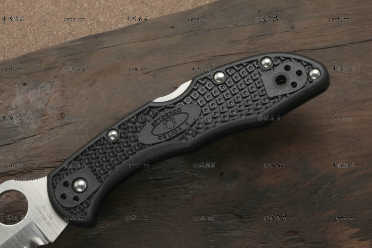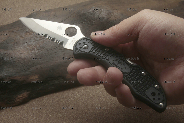 品 牌: SPYDERCO 型 号: C11PSBK 类 型: 折刃 全 长: 181mm 刃 长: 73mm 刃 厚: 2.5mm 闭 合: 108mm 刃 材: VG-10 硬 度: 60-62HRC 表 面: 缎面处理 柄 材: FRN玻璃纤维尼龙 锁 型: 背锁 重 量: 71g 附 件: 口袋夹子 包 装: 原厂包装 产 地: 美国 日本SEKI代工 Spyderco 公司在90年代出品的 Delica 与 Endura 两款刃,重点便在强调体积小、重量轻,易于使用;单手便能开合。在2002年,Spyderco 公司将 Delica 的刃身改以VG-10钢材打造,刃柄使用质轻耐用的玻璃纤维强化尼龙塑造,整体重量更仅只有71克;表面有凹凸纹路,使用时可握得更稳。刃柄侧边的腰带夹可用硬币松开,并且依使用习惯移到另一面装上。 SPYDERCO是个创立于美国科罗拉多州的刃具公司,它以前所未有的创新精神而闻名。现代名牌折刃中的单手开启功能、便于携带的卡子(CLIP)这些几乎成为现代高科技折刃标志的设计。正是SPYDERCO发明的! 如今不断创新的SPYDERCO公司已拥有数十项设计专利。其商标性的单手开启园孔造型不仅是最快捷顺畅的开启方式,而且这种独特的造型使人们一瞥之下就能认出那是SPYDERCO的产品。开启最为迅捷! SPYDERCO另一独特设计专利是SPYDERCO锯齿,这一发明是受到了鲨鱼牙齿的启发,SPYDERCO是不仅在业界最先成功使用锯齿刃!而且其与众不同的设计使之比普通的锯齿刃具有更强的切割力和更长的保持能力,它的切割力足以割开Kevlar-凯芙拉材料的防割手套! SPYDERCO另一强大优势就是它选用的钢材,它们从不用那些低成本、低性能的420或425系列的钢材。而它选用的钢材有AUS系列、ATS系列、440系列以及VG系列,甚至制刃界中的顶极材料CPM440V都是它们的常用材料。在美国Spyderco被称为“标准创立者(Standard Setter)”创新的设计,精良的选材,完美的工艺。 SPYDERCO的目标是:"无论你拥有多少刃具,其中必有SPYDERCO"