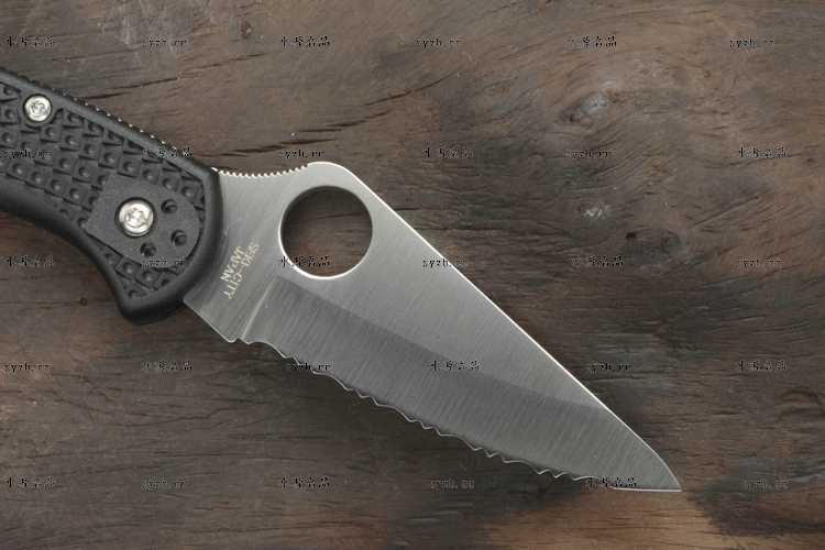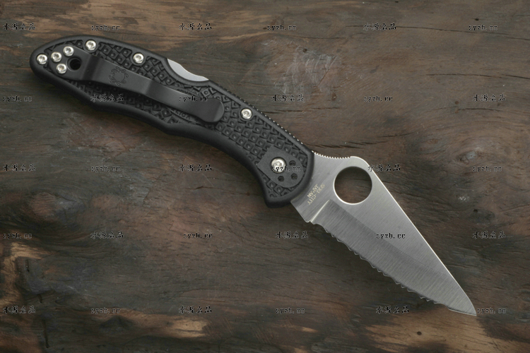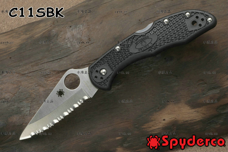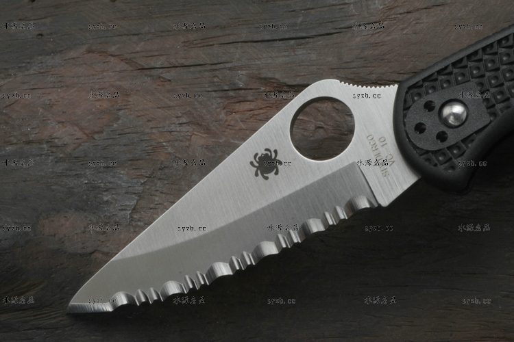 品 牌: SPYDERCO 型 号: C11SBK 类 型: 折刃 全 长: 181mm 刃 长: 73mm 刃 厚: 2.5mm 闭 合: 108mm 刃 材: VG-10 硬 度: 60-62HRC 表 面: 缎面处理 柄 材: FRN玻璃纤维尼龙 锁 型: 背锁 重 量: 71g 附 件: 口袋夹子 包 装: 原厂包装 产 地: 美国 日本SEKI代工 Spyderco 公司在90年代出品的 Delica 与 Endura 两款刃,重点便在强调体积小、重量轻,易于使用;单手便能开合。在2002年,Spyderco 公司将 Delica 的刃身改以VG-10钢材打造,刃柄使用质轻耐用的玻璃纤维强化尼龙塑造,整体重量更仅只有71克;表面有凹凸纹路,使用时可握得更稳。刃柄侧边的腰带夹可用硬币松开,并且依使用习惯移到另一面装上。 SPYDERCO是个创立于美国科罗拉多州的刃具公司,它以前所未有的创新精神而闻名。现代名牌折刃中的单手开启功能、便于携带的卡子(CLIP)这些几乎成为现代高科技折刃标志的设计。正是SPYDERCO发明的! 如今不断创新的SPYDERCO公司已拥有数十项设计专利。其商标性的单手开启园孔造型不仅是最快捷顺畅的开启方式,而且这种独特的造型使人们一瞥之下就能认出那是SPYDERCO的产品。开启最为迅捷! SPYDERCO另一独特设计专利是SPYDERCO锯齿,这一发明是受到了鲨鱼牙齿的启发,SPYDERCO是不仅在业界最先成功使用锯齿刃!而且其与众不同的设计使之比普通的锯齿刃具有更强的切割力和更长的保持能力,它的切割力足以割开Kevlar-凯芙拉材料的防割手套! SPYDERCO另一强大优势就是它选用的钢材,它们从不用那些低成本、低性能的420或425系列的钢材。而它选用的钢材有AUS系列、ATS系列、440系列以及VG系列,甚至制刃界中的顶极材料CPM440V都是它们的常用材料。在美国Spyderco被称为“标准创立者(Standard Setter)”创新的设计,精良的选材,完美的工艺。 SPYDERCO的目标是:"无论你拥有多少刃具,其中必有SPYDERCO"