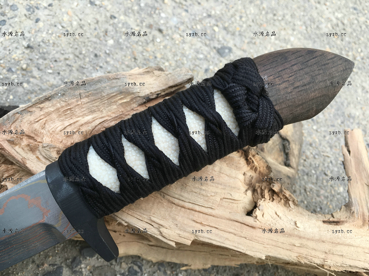刃具木质手柄上部的护手可以对用户手部提供有效保护,手柄手部采用绕绳Tsuka-Maki材质一般用来进行手柄的装饰,内部采用白色鱼皮贴附,这种艺术性质可以追溯到几个世纪前。这种手法使得刃具外形更为出色,并且需要长时间手工完成。手柄外侧采用黑色绕绳处理,增加握感和观赏性。