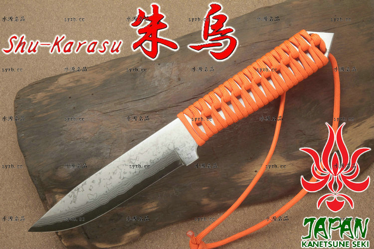 Kanetsune 关兼常 KB-260 Shu-Karasu 朱鸟 青纸2号钢15层大马士革 绳柄户外生存小直(暂无现货)