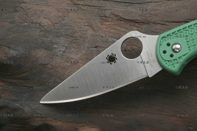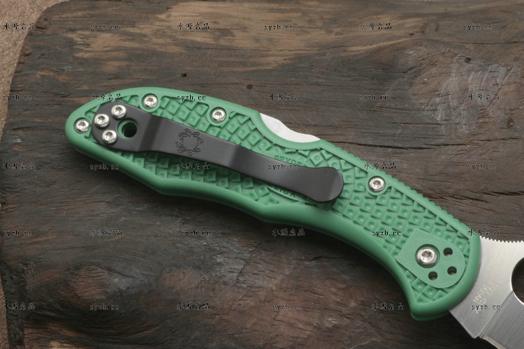 品 牌: SPYDERCO 型 号: C11FPGR 类 型: 折刃 全 长: 181mm 刃 长: 73mm 刃 厚: 2.5mm 闭 合: 108mm 刃 材: VG-10 硬 度: 60-62HRC 表 面: 缎面处理 柄 材: 玻璃纤维尼龙 锁 型: 背锁 重 量: 64g 附 件: 口袋夹子 包 装: 原厂包装 产 地: 美国 日本SEKI代工 Spyderco 公司在90年代出品的 Delica 与 Endura 两款刃,重点便在强调体积小、重量轻,易于使用;单手便能开合。在2002年,Spyderco 公司将 Delica 的刃身改以VG-10钢材打造,刃柄使用质轻耐用的玻璃纤维强化尼龙塑造,整体重量更仅只有64克;表面有凹凸纹路,使用时可握得更稳。刃柄侧边的腰带夹可用硬币松开,并且依使用习惯移到另一面装上。 SPYDERCO是个创立于美国科罗拉多州的刃具公司,它以前所未有的创新精神而闻名。现代名牌折刃中的单手开启功能、便于携带的卡子(CLIP)这些几乎成为现代高科技折刃标志的设计。正是SPYDERCO发明的! 如今不断创新的SPYDERCO公司已拥有数十项设计专利。其商标性的单手开启园孔造型不仅是最快捷顺畅的开启方式,而且这种独特的造型使人们一瞥之下就能认出那是SPYDERCO的产品。开启最为迅捷! SPYDERCO另一独特设计专利是SPYDERCO锯齿,这一发明是受到了鲨鱼牙齿的启发,SPYDERCO是不仅在业界最先成功使用锯齿刃!而且其与众不同的设计使之比普通的锯齿刃具有更强的切割力和更长的保持能力,它的切割力足以割开Kevlar-凯芙拉材料的防割手套! SPYDERCO另一强大优势就是它选用的钢材,它们从不用那些低成本、低性能的420或425系列的钢材。而它选用的钢材有AUS系列、ATS系列、440系列以及VG系列,甚至制刃界中的顶极材料CPM440V都是它们的常用材料。在美国Spyderco被称为“标准创立者(Standard Setter)”创新的设计,精良的选材,完美的工艺。 SPYDERCO的目标是:"无论你拥有多少刃具,其中必有SPYDERCO"