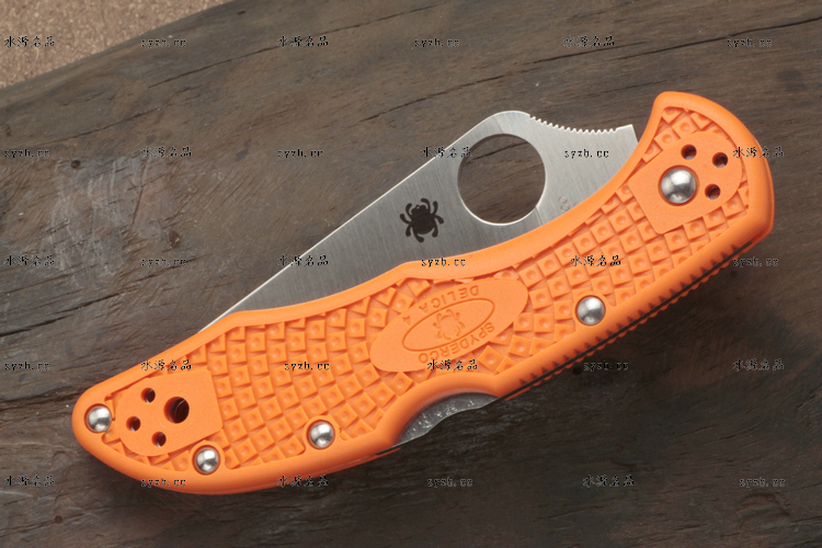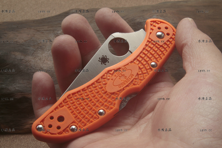 品 牌: SPYDERCO 型 号: C11FPOR 类 型: 折刃 全 长: 181mm 刃 长: 73mm 刃 厚: 2.5mm 闭 合: 108mm 刃 材: VG-10 硬 度: 60-62HRC 表 面: 缎面处理 柄 材: 玻璃纤维尼龙 锁 型: 背锁 重 量: 64g 附 件: 口袋夹子 包 装: 原厂包装 产 地: 美国 日本SEKI代工 Spyderco 公司在90年代出品的 Delica 与 Endura 两款刃,重点便在强调体积小、重量轻,易于使用;单手便能开合。在2002年,Spyderco 公司将 Delica 的刃身改以VG-10钢材打造,刃柄使用质轻耐用的玻璃纤维强化尼龙塑造,整体重量更仅只有64克;表面有凹凸纹路,使用时可握得更稳。刃柄侧边的腰带夹可用硬币松开,并且依使用习惯移到另一面装上。 SPYDERCO是个创立于美国科罗拉多州的刃具公司,它以前所未有的创新精神而闻名。现代名牌折刃中的单手开启功能、便于携带的卡子(CLIP)这些几乎成为现代高科技折刃标志的设计。正是SPYDERCO发明的! 如今不断创新的SPYDERCO公司已拥有数十项设计专利。其商标性的单手开启园孔造型不仅是最快捷顺畅的开启方式,而且这种独特的造型使人们一瞥之下就能认出那是SPYDERCO的产品。开启最为迅捷! SPYDERCO另一独特设计专利是SPYDERCO锯齿,这一发明是受到了鲨鱼牙齿的启发,SPYDERCO是不仅在业界最先成功使用锯齿刃!而且其与众不同的设计使之比普通的锯齿刃具有更强的切割力和更长的保持能力,它的切割力足以割开Kevlar-凯芙拉材料的防割手套! SPYDERCO另一强大优势就是它选用的钢材,它们从不用那些低成本、低性能的420或425系列的钢材。而它选用的钢材有AUS系列、ATS系列、440系列以及VG系列,甚至制刃界中的顶极材料CPM440V都是它们的常用材料。在美国Spyderco被称为“标准创立者(Standard Setter)”创新的设计,精良的选材,完美的工艺。 SPYDERCO的目标是:"无论你拥有多少刃具,其中必有SPYDERCO"