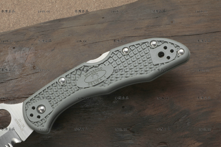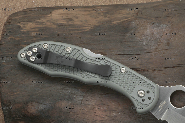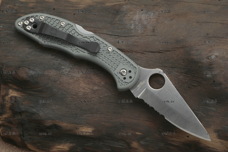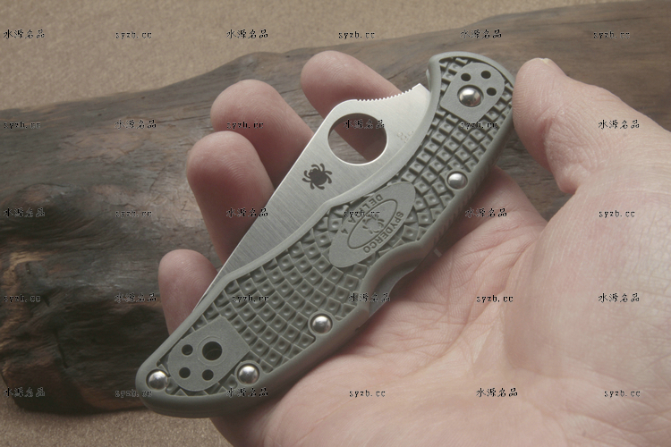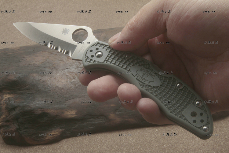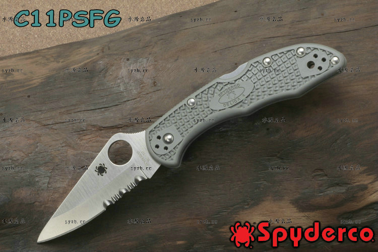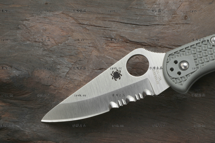 品 牌: SPYDERCO 型 号: C11PSFG 类 型: 折刃 全 长: 181mm 刃 长: 73mm 刃 厚: 2.5mm 闭 合: 108mm 刃 材: VG-10 硬 度: 60-62HRC 表 面: 缎面处理 柄 材: 玻璃纤维尼龙 锁 型: 背锁 重 量: 71g 附 件: 口袋夹子 包 装: 原厂包装 产 地: 美国 日本SEKI代工 Spyderco 公司在90年代出品的 Delica 与 Endura 两款刃,重点便在强调体积小、重量轻,易于使用;单手便能开合。在2002年,Spyderco 公司将 Delica 的刃身改以VG-10钢材打造,刃柄使用质轻耐用的玻璃纤维强化尼龙塑造,整体重量更仅只有71克;表面有凹凸纹路,使用时可握得更稳。刃柄侧边的腰带夹可用硬币松开,并且依使用习惯移到另一面装上。 SPYDERCO是个创立于美国科罗拉多州的刃具公司,它以前所未有的创新精神而闻名。现代名牌折刃中的单手开启功能、便于携带的卡子(CLIP)这些几乎成为现代高科技折刃标志的设计。正是SPYDERCO发明的! 如今不断创新的SPYDERCO公司已拥有数十项设计专利。其商标性的单手开启园孔造型不仅是最快捷顺畅的开启方式,而且这种独特的造型使人们一瞥之下就能认出那是SPYDERCO的产品。开启最为迅捷! SPYDERCO另一独特设计专利是SPYDERCO锯齿,这一发明是受到了鲨鱼牙齿的启发,SPYDERCO是不仅在业界最先成功使用锯齿刃!而且其与众不同的设计使之比普通的锯齿刃具有更强的切割力和更长的保持能力,它的切割力足以割开Kevlar-凯芙拉材料的防割手套! SPYDERCO另一强大优势就是它选用的钢材,它们从不用那些低成本、低性能的420或425系列的钢材。而它选用的钢材有AUS系列、ATS系列、440系列以及VG系列,甚至制刃界中的顶极材料CPM440V都是它们的常用材料。在美国Spyderco被称为“标准创立者(Standard Setter)”创新的设计,精良的选材,完美的工艺。 SPYDERCO的目标是:"无论你拥有多少刃具,其中必有SPYDERCO"