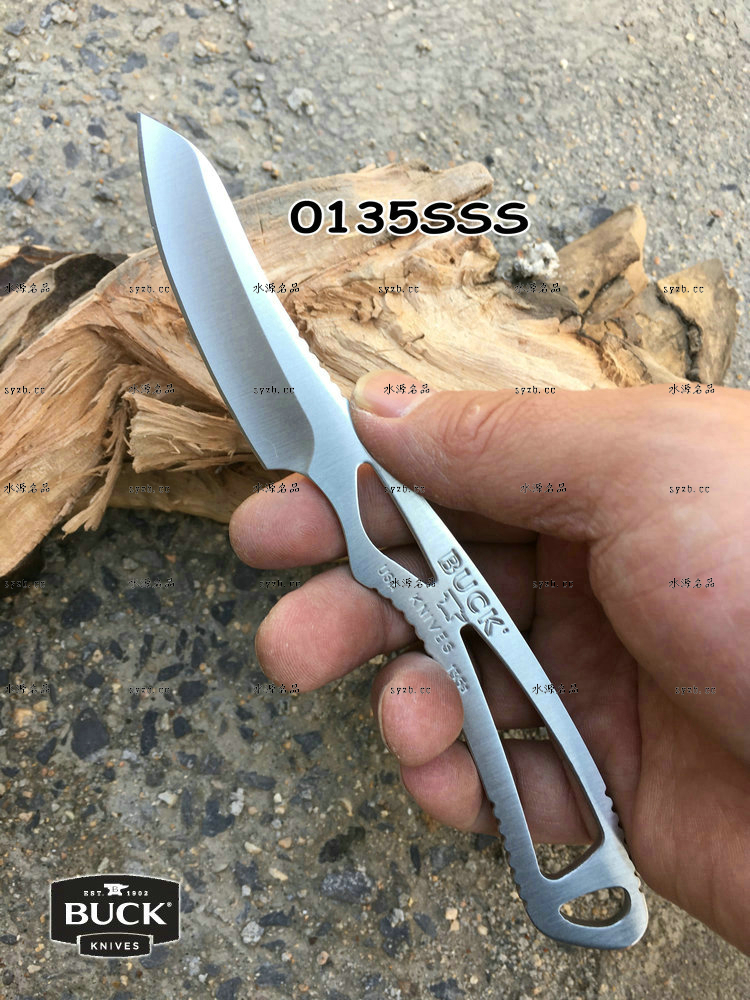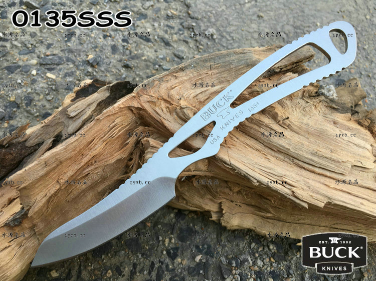 类 型: 颈刃 型 号: 0135SSS-B 全 长: 172mm 刃 材: 420HC 硬 度: 58-60HRC 表 面: 缎面 刃 厚: 2.5mm 重 量: 31.3g 原产地: 美国 刃鞘:尼龙鞘 Lightweight, sturdy and effective. This caping knife can be carried alone or used to compliment any hunting knife. The skeletal steel frame is heavy-duty, yet lightweight for easy carry. You won't even know it's there. The 420HC stainless steel blade and handle ensure durability and corrosion resistance, while the minimalist design is effective and reliable while in use.