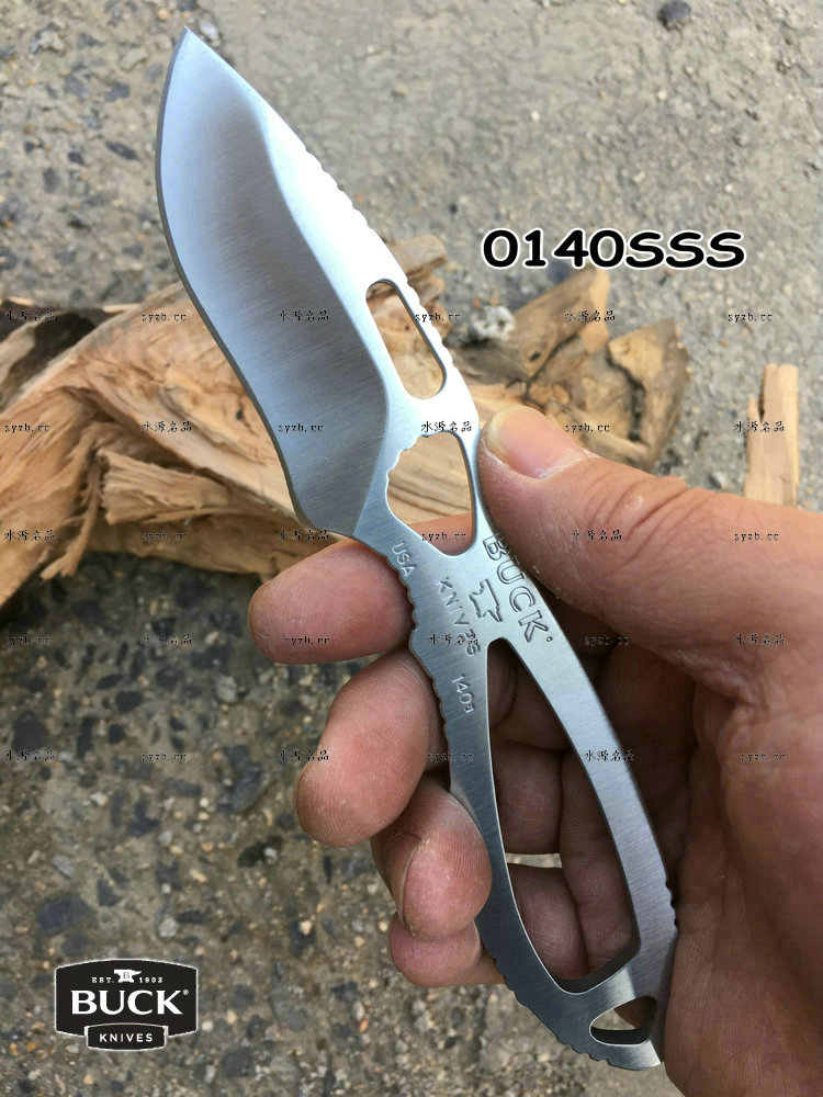 类 型: 颈刃 型 号: 0140SSS-B 全 长: 167mm 刃 材: 420HC 硬 度: 58-60HRC 表 面: 缎面 刃 厚: 4mm 重 量: 71.2g 原产地: 美国 刃鞘:尼龙鞘 Lightweight, sturdy and effective. This skinning knife can be carried alone or used to compliment any hunting knife. The skeletal steel frame is heavy-duty, yet lightweight for easy, carry. You won't even know it's there. The 420HC steel blade ensures durability and corrosion resistance, while the minimalist design is effective and reliable while in use.