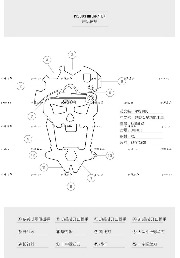 SOG SM1001-CP 骷髅头多功能组合小工具(暂无现货)