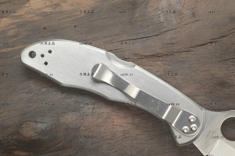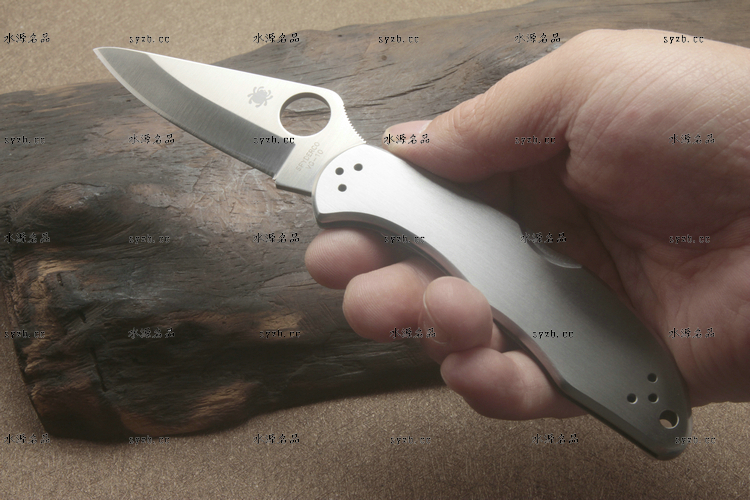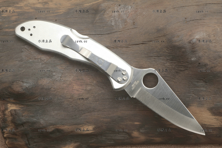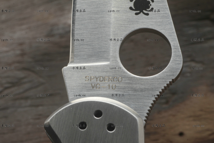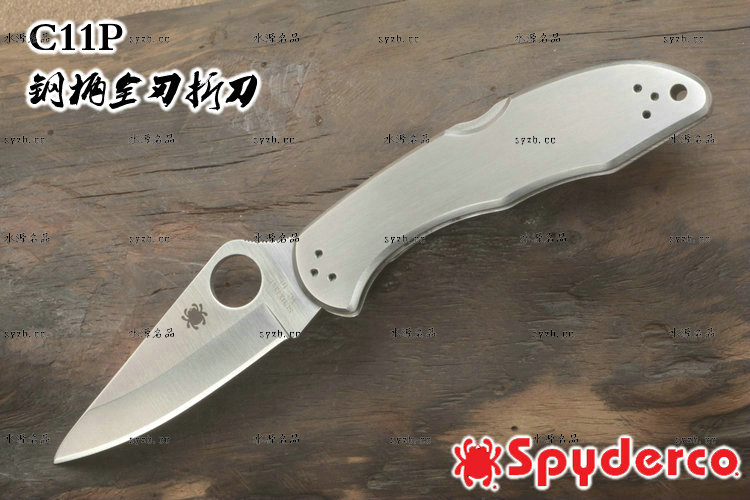 类 型: 折刃 型 号: C11P 全 长: 182mm 刃 长: 75mm 闭合长度: 107mm 刃 材: VG-10 硬 度: 60-62HRC 表 面: 缎面打磨处理 刃 厚: 2.5mm 柄 材: 不锈钢 锁 型: 背锁 重 量: 116g 原产地: 美国 日本SEKI代工 有半齿和平刃可供选择 1991年美国和瑞典组织的登山队在登珠穆朗玛峰时,SPYDERCO公司的C11被登山队选定为指定刃具。全不锈钢手感舒适,看上去很灵巧。AUS-6不锈钢,凹磨刃刃,其形状适用于各种切割工作。刃尖能朝上或朝下携带。手柄表面平滑方便,能雕刻或修饰 SPYDERCO是个创立于美国科罗拉多州的刃具公司,它以前所未有的创新精神而闻名。现代名牌折刃中的单手开启功能、便于携带的卡子(CLIP)这些几乎成为现代高科技折刃标志的设计。正是SPYDERCO发明的! 如今不断创新的SPYDERCO公司已拥有数十项设计专利。其商标性的单手开启园孔造型不仅是最快捷顺畅的开启方式,而且这种独特的造型使人们一瞥之下就能认出那是SPYDERCO的产品。开启最为迅捷! SPYDERCO另一独特设计专利是SPYDERCO锯齿,这一发明是受到了鲨鱼牙齿的启发,SPYDERCO是不仅在业界最先成功使用锯齿刃!而且其与众不同的设计使之比普通的锯齿刃具有更强的切割力和更长的保持能力,它的切割力足以割开Kevlar-凯芙拉材料的防割手套! SPYDERCO另一强大优势就是它选用的钢材,它们从不用那些低成本、低性能的420或425系列的钢材。而它选用的钢材有AUS系列、ATS系列、440系列以及VG系列,甚至制刃界中的顶极材料CPM440V都是它们的常用材料。在美国Spyderco被称为“标准创立者(Standard Setter)”创新的设计,精良的选材,完美的工艺。 SPYDERCO的目标是:"无论你拥有多少刃具,其中必有SPYDERCO