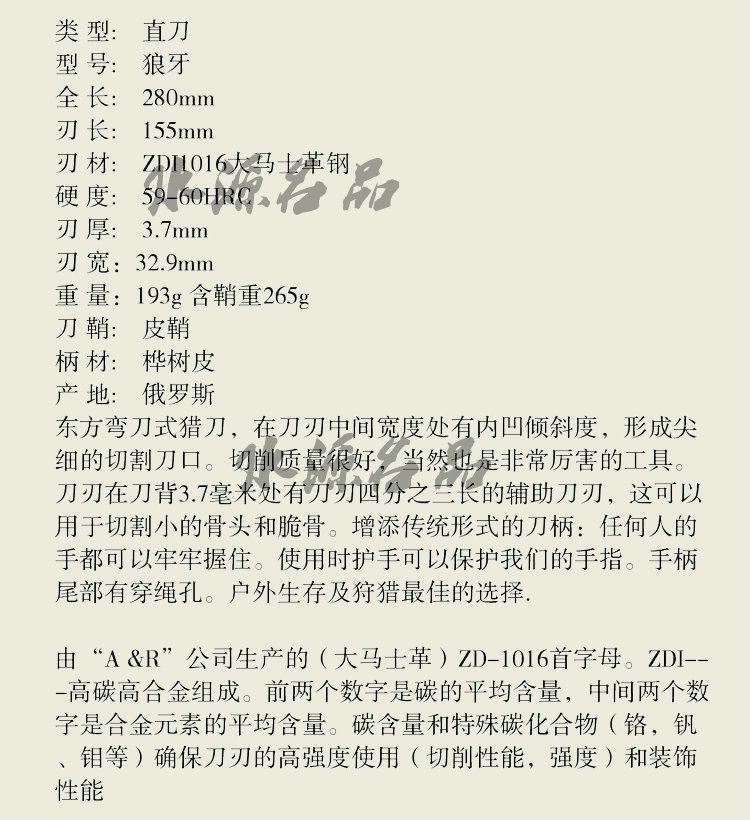 俄罗斯 A&R 狼牙 ZDI-1016大马士革钢 桦木皮柄 猎dao(暂无现货)