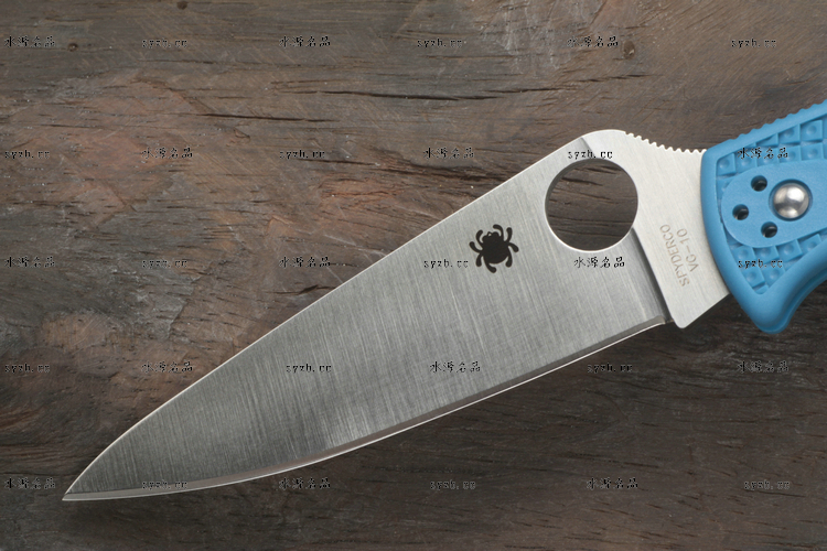 类 型: 折刃 型 号: C10FPBL 全 长: 222 mm 刃 长: 96 mm 闭合长度: 127 mm 刃 材: VG-10 硬 度: 60HRC 表 面: 缎面处理 刃 厚: 3mm 柄 长: 127 mm 柄 材: FRN 强化纤维尼龙 锁 型: 线锁 重 量: 103g 原产地: 美国 日本SEKI代工 Spyderco公司最受欢迎刃款之一,就是这把编号C10的「巅峰战士用刃(Endura)」,是刃具界最为人称道的收藏品。这把刃曾经在1993年由雷尼.哈林导演,席维斯史特龙主演的电影巅峰战士(Cliffhanger)中出现,名声因此更为远播。 SPYDERCO是个创立于美国科罗拉多州的刃具公司,它以前所未有的创新精神而闻名。现代名牌折刃中的单手开启功能、便于携带的卡子(CLIP)这些几乎成为现代高科技折刃标志的设计。正是SPYDERCO发明的! 如今不断创新的SPYDERCO公司已拥有数十项设计专利。其商标性的单手开启园孔造型不仅是最快捷顺畅的开启方式,而且这种独特的造型使人们一瞥之下就能认出那是SPYDERCO的产品。开启最为迅捷! SPYDERCO另一独特设计专利是SPYDERCO锯齿,这一发明是受到了鲨鱼牙齿的启发,SPYDERCO是不仅在业界最先成功使用锯齿刃!而且其与众不同的设计使之比普通的锯齿刃具有更强的切割力和更长的保持能力,它的切割力足以割开Kevlar-凯芙拉材料的防割手套! SPYDERCO另一强大优势就是它选用的钢材,它们从不用那些低成本、低性能的420或425系列的钢材。而它选用的钢材有AUS系列、ATS系列、440系列以及VG系列,甚至制刃界中的顶极材料CPM440V都是它们的常用材料。在美国Spyderco被称为“标准创立者(Standard Setter)”创新的设计,精良的选材,完美的工艺。 SPYDERCO的目标是:"无论你拥有多少刃具,其中必有SPYDERCO"