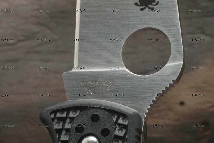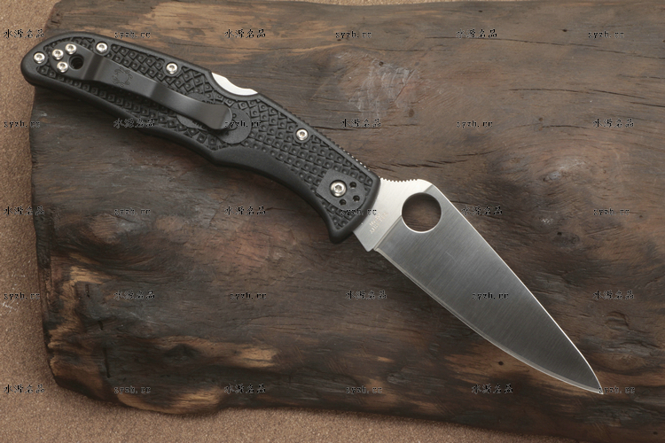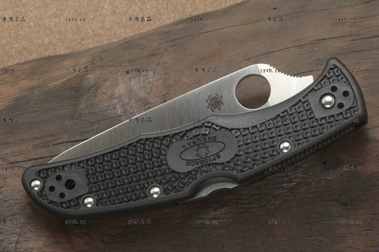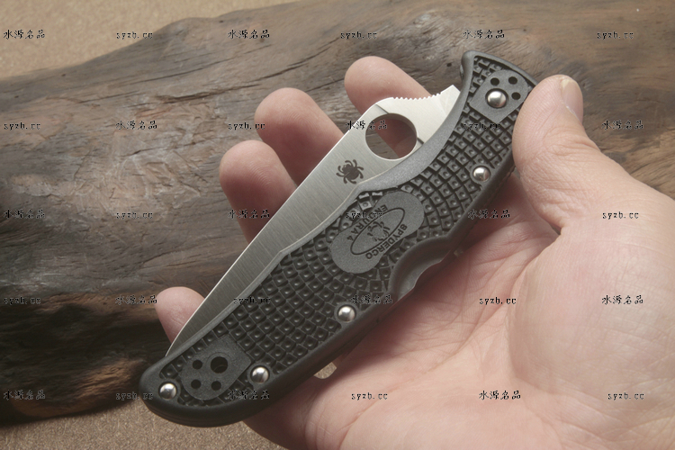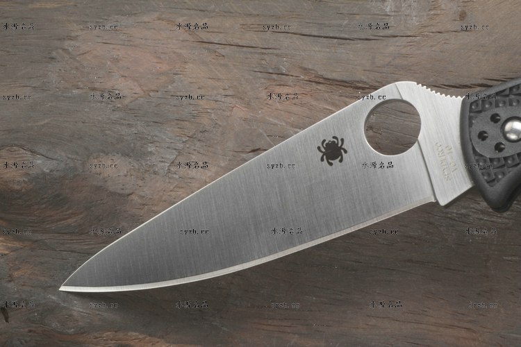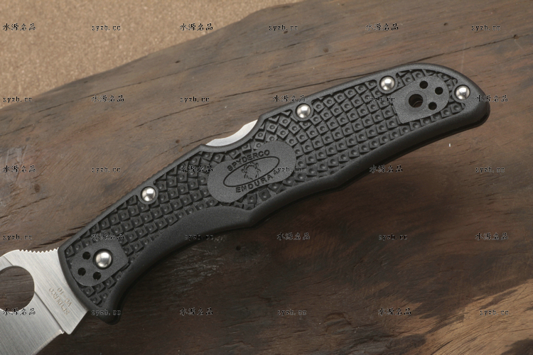 类 型: 折刃 型 号: C10FPBK 全 长: 222 mm 刃 长: 96 mm 闭合长度: 127 mm 刃 材: VG-10 硬 度: 60HRC 表 面: 缎面处理 刃 厚: 3mm 柄 长: 127 mm 柄 材: FRN 强化纤维尼龙 锁 型: 线锁 重 量: 103g 原产地: 美国 日本SEKI代工 Spyderco公司最受欢迎刃款之一,就是这把编号C10的「巅峰战士用刃(Endura)」,是刃具界最为人称道的收藏品。这把刃曾经在1993年由雷尼.哈林导演,席维斯史特龙主演的电影巅峰战士(Cliffhanger)中出现,名声因此更为远播。 SPYDERCO是个创立于美国科罗拉多州的刃具公司,它以前所未有的创新精神而闻名。现代名牌折刃中的单手开启功能、便于携带的卡子(CLIP)这些几乎成为现代高科技折刃标志的设计。正是SPYDERCO发明的! 如今不断创新的SPYDERCO公司已拥有数十项设计专利。其商标性的单手开启园孔造型不仅是最快捷顺畅的开启方式,而且这种独特的造型使人们一瞥之下就能认出那是SPYDERCO的产品。开启最为迅捷! SPYDERCO另一独特设计专利是SPYDERCO锯齿,这一发明是受到了鲨鱼牙齿的启发,SPYDERCO是不仅在业界最先成功使用锯齿刃!而且其与众不同的设计使之比普通的锯齿刃具有更强的切割力和更长的保持能力,它的切割力足以割开Kevlar-凯芙拉材料的防割手套! SPYDERCO另一强大优势就是它选用的钢材,它们从不用那些低成本、低性能的420或425系列的钢材。而它选用的钢材有AUS系列、ATS系列、440系列以及VG系列,甚至制刃界中的顶极材料CPM440V都是它们的常用材料。在美国Spyderco被称为“标准创立者(Standard Setter)”创新的设计,精良的选材,完美的工艺。 SPYDERCO的目标是:"无论你拥有多少刃具,其中必有SPYDERCO"