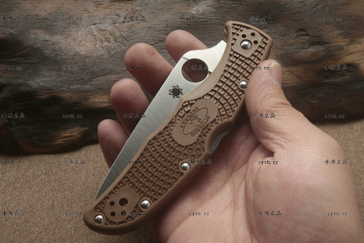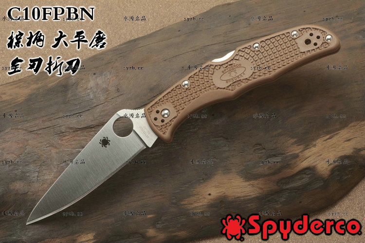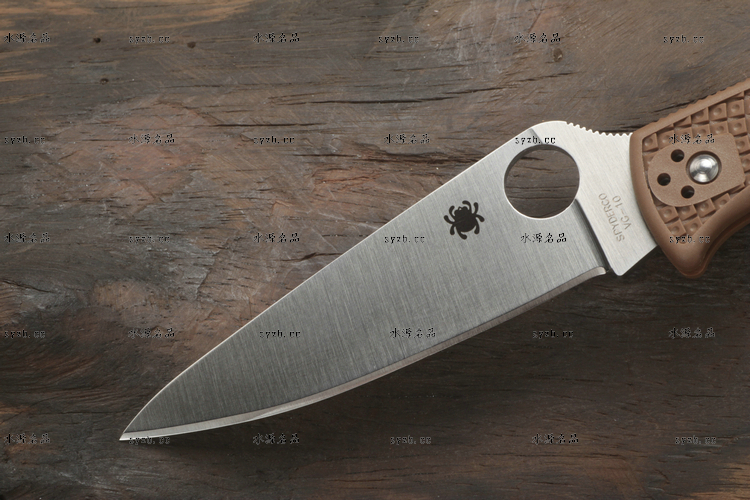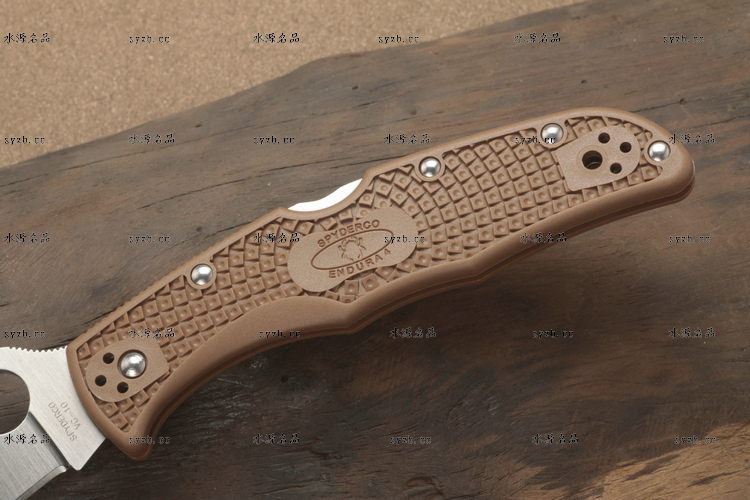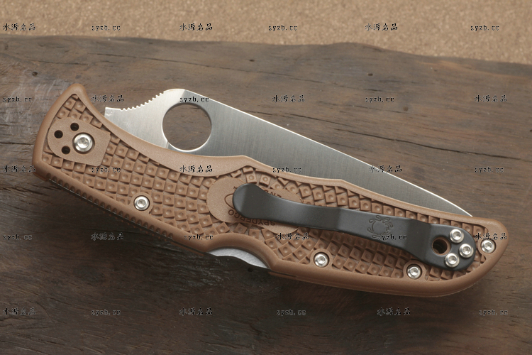 类 型: 折刃 型 号: C10FPBN 全 长: 222 mm 刃 长: 96 mm 闭合长度: 127 mm 刃 材: VG-10 硬 度: 60HRC 表 面: 缎面处理 刃 厚: 3mm 柄 长: 127 mm 柄 材: FRN 强化纤维尼龙 锁 型: 线锁 重 量: 103g 原产地: 美国 日本SEKI代工 Spyderco公司最受欢迎刃款之一,就是这把编号C10的「巅峰战士用刃(Endura)」,是刃具界最为人称道的收藏品。这把刃曾经在1993年由雷尼.哈林导演,席维斯史特龙主演的电影巅峰战士(Cliffhanger)中出现,名声因此更为远播。 SPYDERCO是个创立于美国科罗拉多州的刃具公司,它以前所未有的创新精神而闻名。现代名牌折刃中的单手开启功能、便于携带的卡子(CLIP)这些几乎成为现代高科技折刃标志的设计。正是SPYDERCO发明的! 如今不断创新的SPYDERCO公司已拥有数十项设计专利。其商标性的单手开启园孔造型不仅是最快捷顺畅的开启方式,而且这种独特的造型使人们一瞥之下就能认出那是SPYDERCO的产品。开启最为迅捷! SPYDERCO另一独特设计专利是SPYDERCO锯齿,这一发明是受到了鲨鱼牙齿的启发,SPYDERCO是不仅在业界最先成功使用锯齿刃!而且其与众不同的设计使之比普通的锯齿刃具有更强的切割力和更长的保持能力,它的切割力足以割开Kevlar-凯芙拉材料的防割手套! SPYDERCO另一强大优势就是它选用的钢材,它们从不用那些低成本、低性能的420或425系列的钢材。而它选用的钢材有AUS系列、ATS系列、440系列以及VG系列,甚至制刃界中的顶极材料CPM440V都是它们的常用材料。在美国Spyderco被称为“标准创立者(Standard Setter)”创新的设计,精良的选材,完美的工艺。 SPYDERCO的目标是:"无论你拥有多少刃具,其中必有SPYDERCO"