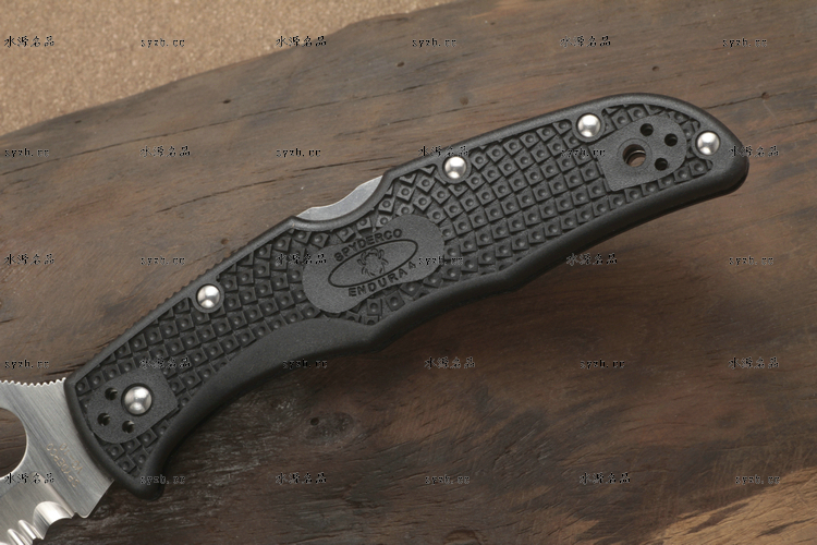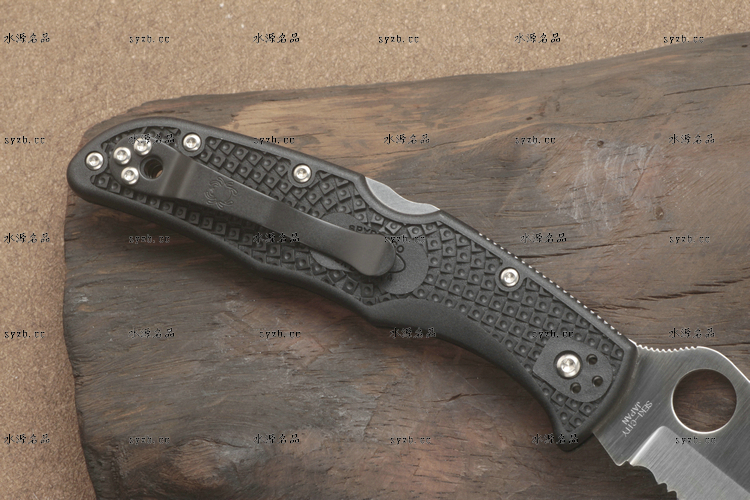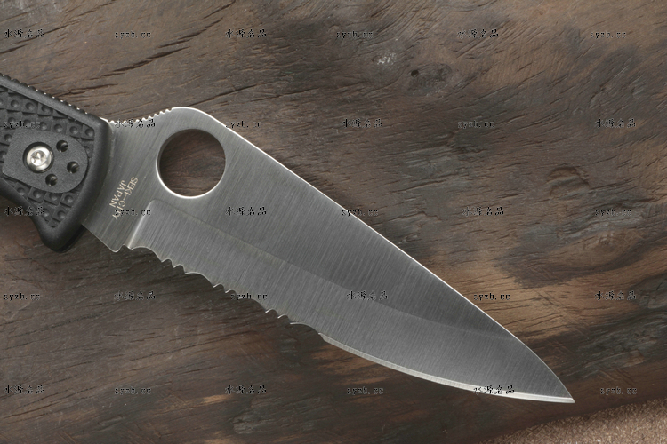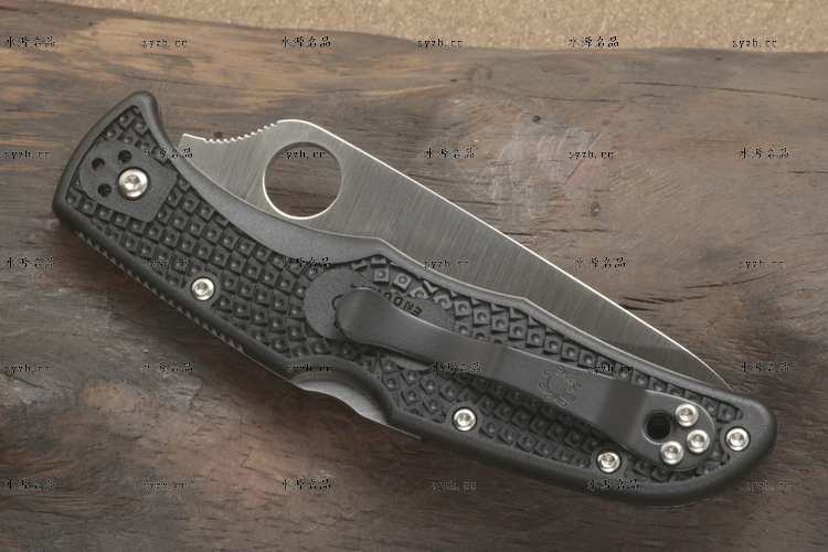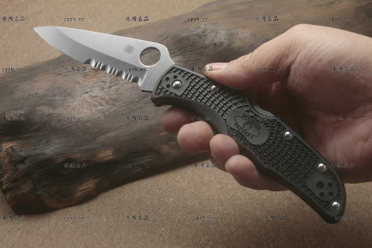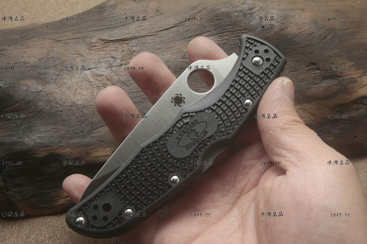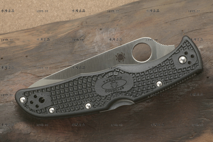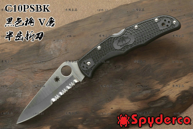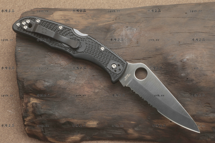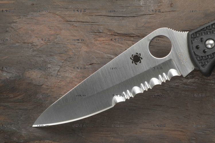 类 型: 折刃 型 号: C10PSBK 全 长: 222 mm 刃 长: 96 mm 闭合长度: 127 mm 刃 材: VG-10 硬 度: 60HRC 表 面: 缎面处理 刃 厚: 3mm 柄 长: 127 mm 柄 材: FRN 强化纤维尼龙 锁 型: 线锁 重 量: 103g 原产地: 美国 日本SEKI代工 Spyderco公司最受欢迎刃款之一,就是这把编号C10的「巅峰战士用刃(Endura)」,是刃具界最为人称道的收藏品。这把刃曾经在1993年由雷尼.哈林导演,席维斯史特龙主演的电影巅峰战士(Cliffhanger)中出现,名声因此更为远播。 SPYDERCO是个创立于美国科罗拉多州的刃具公司,它以前所未有的创新精神而闻名。现代名牌折刃中的单手开启功能、便于携带的卡子(CLIP)这些几乎成为现代高科技折刃标志的设计。正是SPYDERCO发明的! 如今不断创新的SPYDERCO公司已拥有数十项设计专利。其商标性的单手开启园孔造型不仅是最快捷顺畅的开启方式,而且这种独特的造型使人们一瞥之下就能认出那是SPYDERCO的产品。开启最为迅捷! SPYDERCO另一独特设计专利是SPYDERCO锯齿,这一发明是受到了鲨鱼牙齿的启发,SPYDERCO是不仅在业界最先成功使用锯齿刃!而且其与众不同的设计使之比普通的锯齿刃具有更强的切割力和更长的保持能力,它的切割力足以割开Kevlar-凯芙拉材料的防割手套! SPYDERCO另一强大优势就是它选用的钢材,它们从不用那些低成本、低性能的420或425系列的钢材。而它选用的钢材有AUS系列、ATS系列、440系列以及VG系列,甚至制刃界中的顶极材料CPM440V都是它们的常用材料。在美国Spyderco被称为“标准创立者(Standard Setter)”创新的设计,精良的选材,完美的工艺。 SPYDERCO的目标是:"无论你拥有多少刃具,其中必有SPYDERCO"