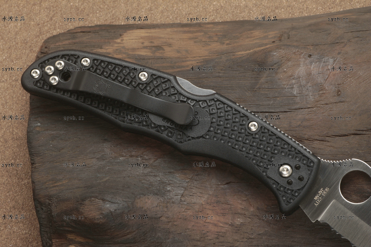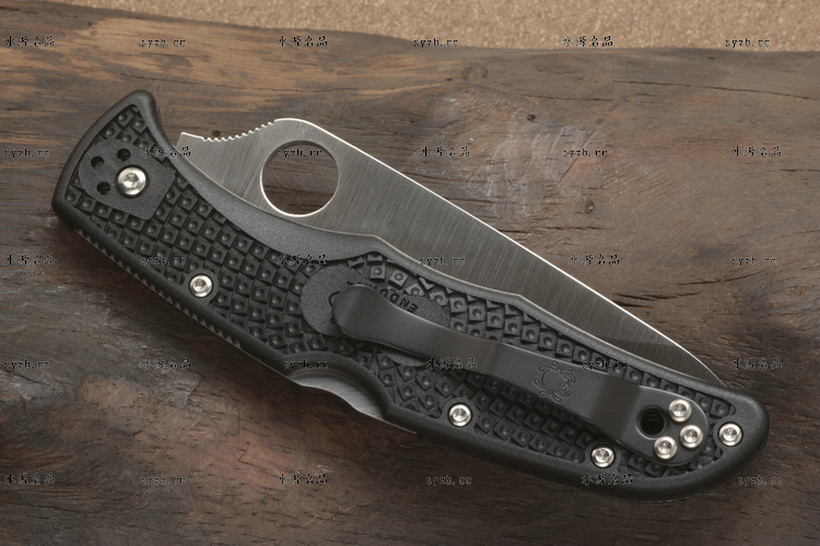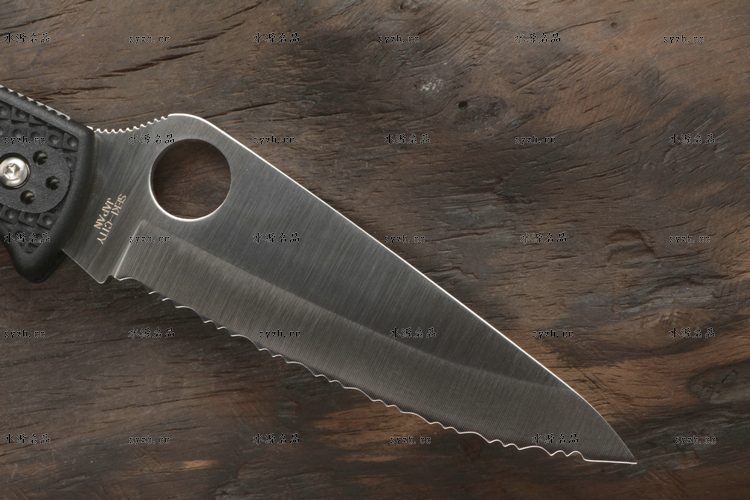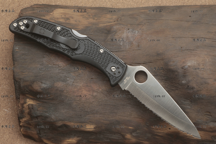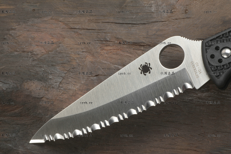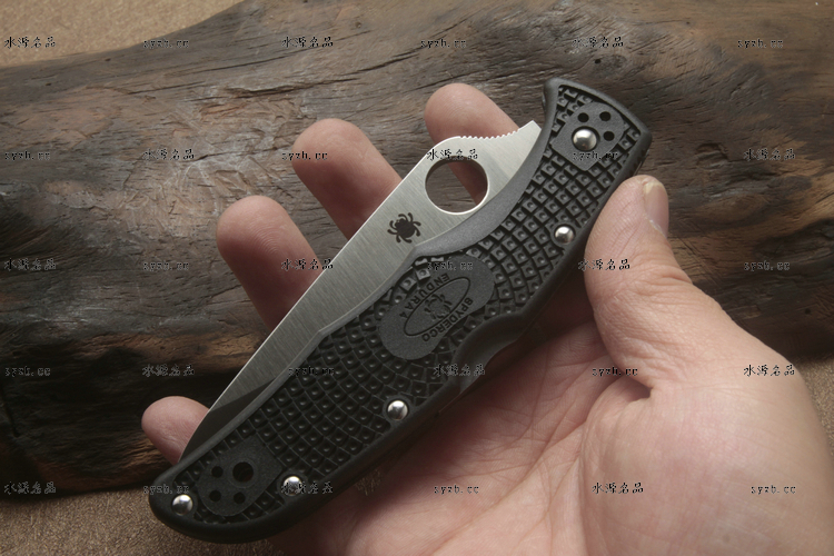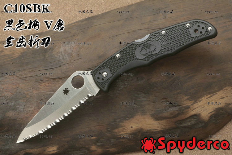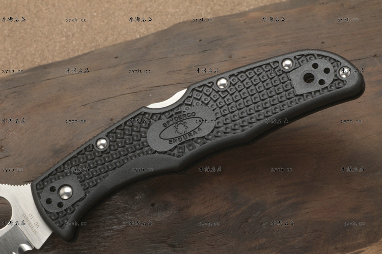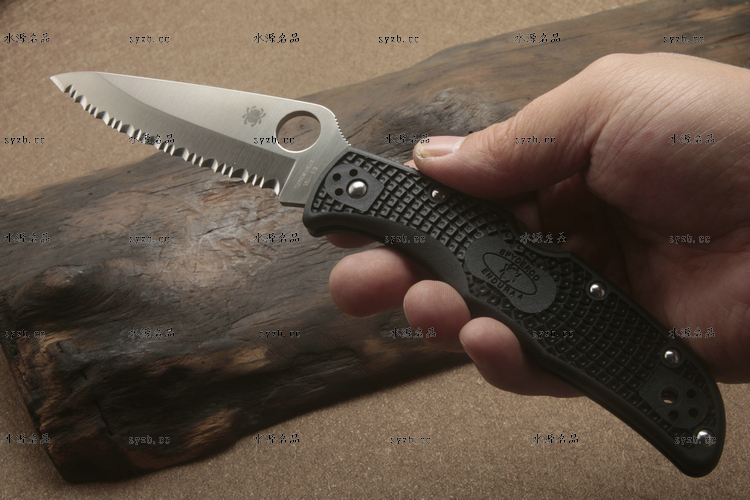 类 型: 折刃 型 号: C10SBK 全 长: 222 mm 刃 长: 96 mm 闭合长度: 127 mm 刃 材: VG-10 硬 度: 60HRC 表 面: 缎面处理 刃 厚: 3mm 柄 长: 127 mm 柄 材: FRN 强化纤维尼龙 锁 型: 线锁 重 量: 103g 原产地: 美国 日本SEKI代工 Spyderco公司最受欢迎刃款之一,就是这把编号C10的「巅峰战士用刃(Endura)」,是刃具界最为人称道的收藏品。这把刃曾经在1993年由雷尼.哈林导演,席维斯史特龙主演的电影巅峰战士(Cliffhanger)中出现,名声因此更为远播。 SPYDERCO是个创立于美国科罗拉多州的刃具公司,它以前所未有的创新精神而闻名。现代名牌折刃中的单手开启功能、便于携带的卡子(CLIP)这些几乎成为现代高科技折刃标志的设计。正是SPYDERCO发明的! 如今不断创新的SPYDERCO公司已拥有数十项设计专利。其商标性的单手开启园孔造型不仅是最快捷顺畅的开启方式,而且这种独特的造型使人们一瞥之下就能认出那是SPYDERCO的产品。开启最为迅捷! SPYDERCO另一独特设计专利是SPYDERCO锯齿,这一发明是受到了鲨鱼牙齿的启发,SPYDERCO是不仅在业界最先成功使用锯齿刃!而且其与众不同的设计使之比普通的锯齿刃具有更强的切割力和更长的保持能力,它的切割力足以割开Kevlar-凯芙拉材料的防割手套! SPYDERCO另一强大优势就是它选用的钢材,它们从不用那些低成本、低性能的420或425系列的钢材。而它选用的钢材有AUS系列、ATS系列、440系列以及VG系列,甚至制刃界中的顶极材料CPM440V都是它们的常用材料。在美国Spyderco被称为“标准创立者(Standard Setter)”创新的设计,精良的选材,完美的工艺。 SPYDERCO的目标是:"无论你拥有多少刃具,其中必有SPYDERCO"