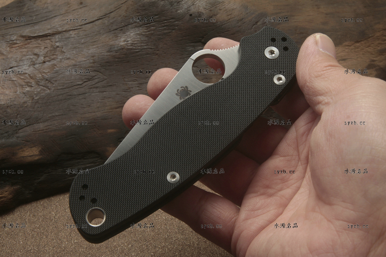类 型: 折刃 型 号: C81GP2 全 长: 210 mm 刃 长: 87 mm 闭合长度: 122 mm 刃 材: CPM-S30V 硬 度: 58-60HRC 表 面: 缎面处理 刃 厚: 3.5mm 柄 长: 122 mm 柄 材: 黑色G-10 锁 型: 线锁 重 量: 106g 原产地: 美国 此款美国军用伞兵刃承袭了美国军用刃(Military)一贯的强撼切割力及锋利度,尺寸则约为美国军用刃(Military)的2/3,大大满足了许多人对于折刃实用性及效率不足的遗憾。无论是CPM-S30V刃身上宽达1.4公分的指推孔或是SPYDERCO专属卡榫及G-10握柄,都适于穿戴手套或是手掌尺吋较大的您在开合亦或是紧握同时,提供给您绝佳的服贴顺手。其刃材S30V 经两年时间测试, 被喻为现时最好的造刃钢材。 有些人称它为粉末钢, 因为在制造过程中, 它被打成粉末状, 然后再经高压处理成钢材。它的好处是钢的每部份都有很平均及同一的表现. 其它的钢材不同的材料分布不均可能会做成刃锋上有不同的韧刃及硬度表现. S30V就解决了这种问题. 而且它的防蚀性也有较好的表现, 硬度也适中, 刃匠在制造过程中容易处理. 两年时间, 秘密地经着名刃匠CHRIS REEVE测试做刃, 有非常满意的效果, 现在开始广泛地采用於造刃技术上。 而且还有采用到工具, 模具, 手术刃, 及工业用工具。
