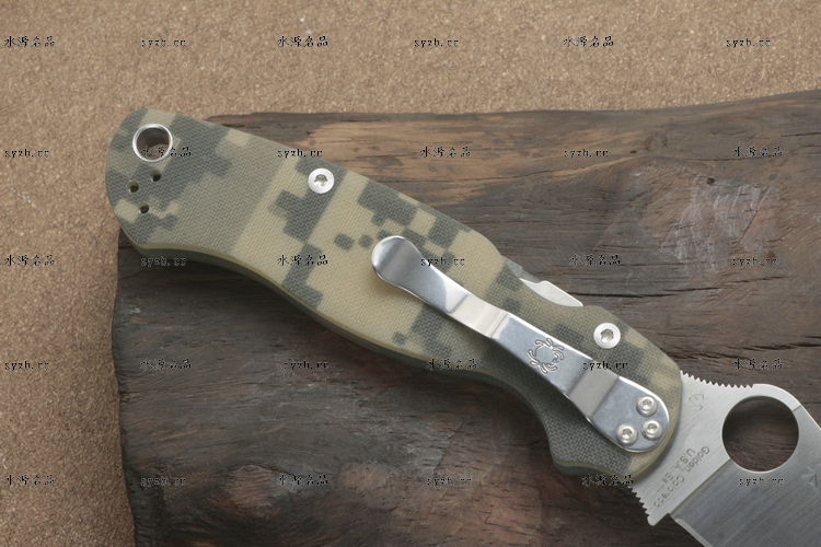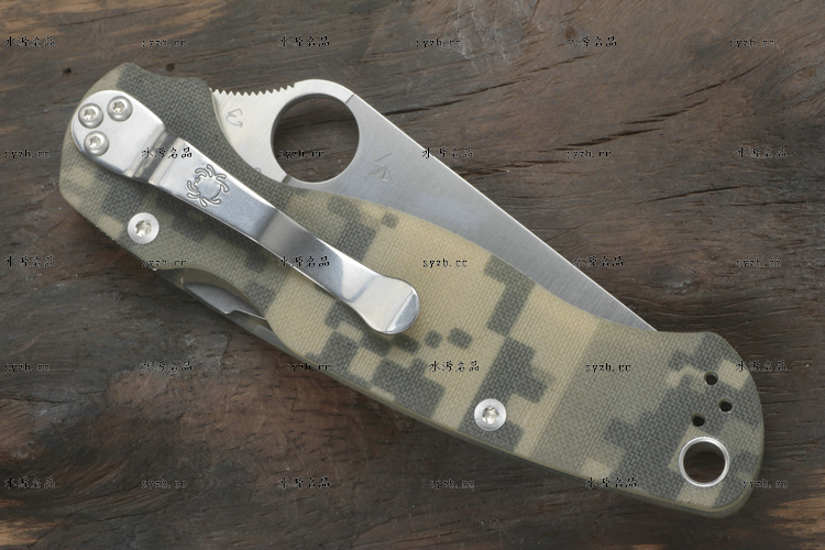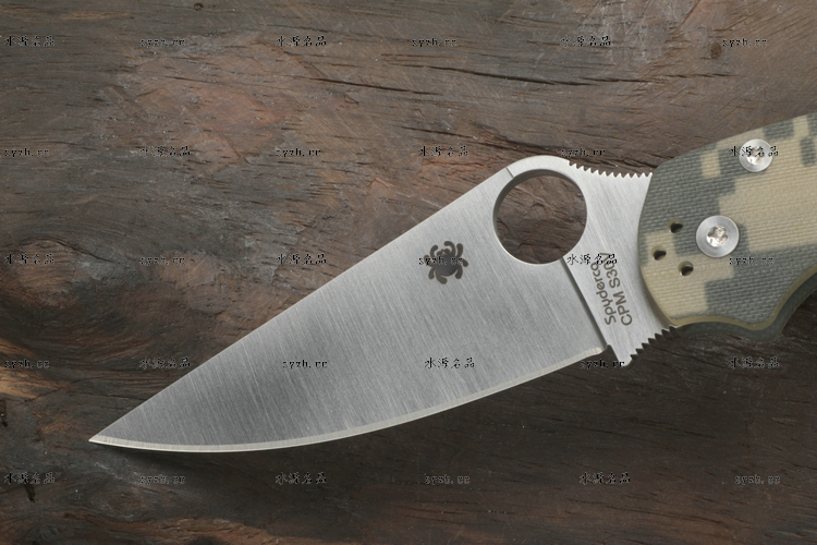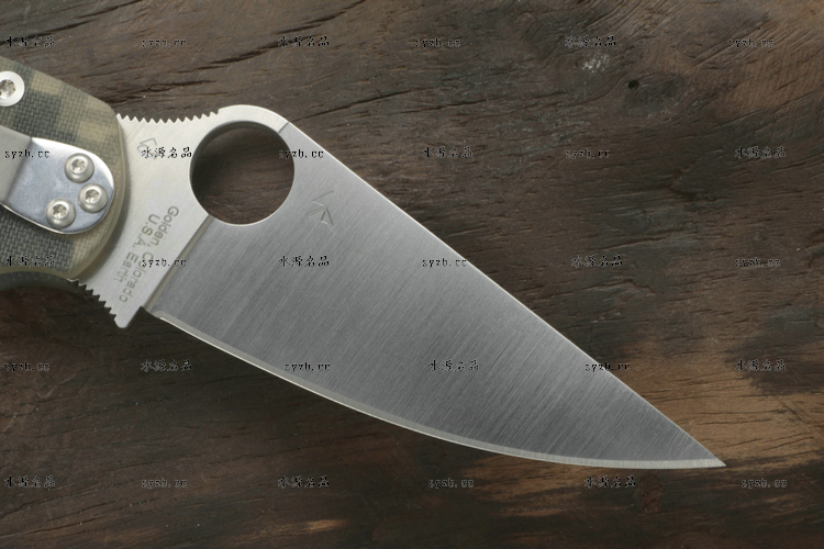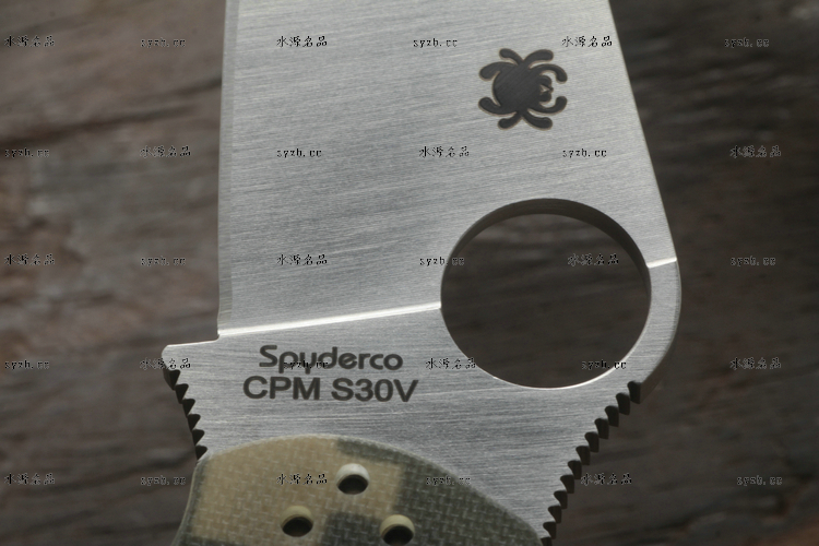 此款美国军用伞兵刃承袭了美国军用刃(Military)一贯的强撼切割力及锋利度,尺寸则约为美国军用刃(Military)的2/3,大大满足了许多人对于折刃实用性及效率不足的遗憾。无论是CPM-S30V刃身上宽达1.4公分的指推孔或是SPYDERCO专属卡榫及G-10握柄,都适于穿戴手套或是手掌尺吋较大的您在开合亦或是紧握同时,提供给您绝佳的服贴顺手。其刃材S30V 经两年时间测试, 被喻为现时最好的造刃钢材。 有些人称它为粉末钢, 因为在制造过程中, 它被打成粉末状, 然后再经高压处理成钢材。它的好处是钢的每部份都有很平均及同一的表现. 其它的钢材不同的材料分布不均可能会做成刃锋上有不同的韧刃及硬度表现. S30V就解决了这种问题. 而且它的防蚀性也有较好的表现, 硬度也适中, 刃匠在制造过程中容易处理. 两年时间, 秘密地经着名刃匠CHRIS REEVE测试做刃, 有非常满意的效果, 现在开始广泛地采用於造刃技术上。 而且还有采用到工具, 模具, 手术刃, 及工业用工具。