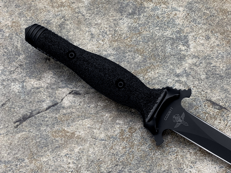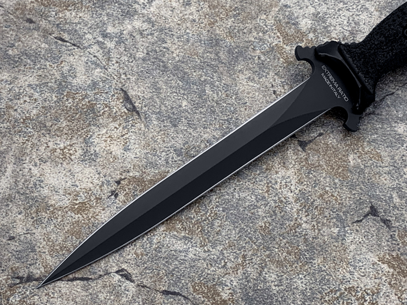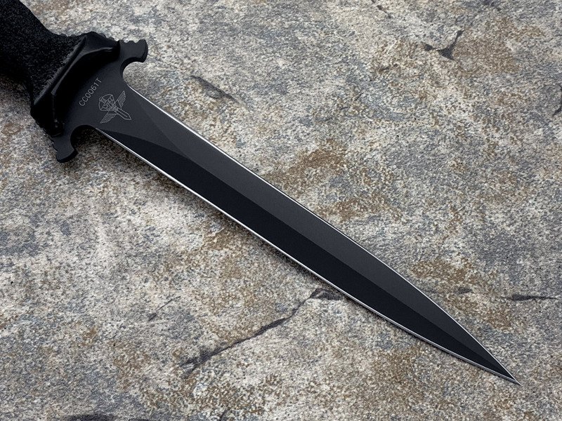 "镇暴者"战术刀拥有长达185mm的匕首型刀刃,刀刃两边对称