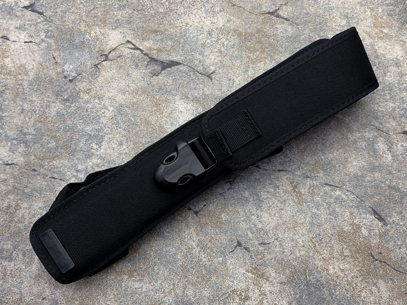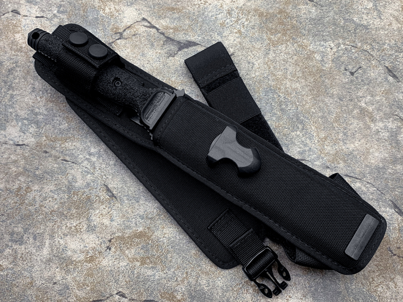 "镇暴者"战术刀使用N690钴不锈钢制造,握柄尾端贴附颗粒防滑材质,并附上一个精细缝制的战术刀鞘。