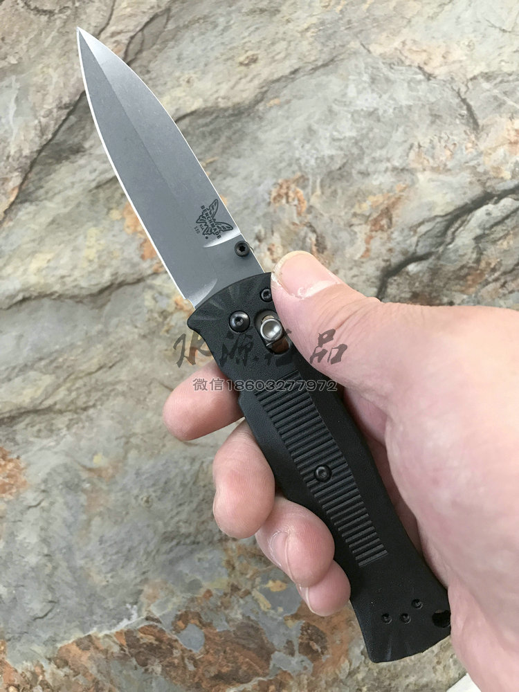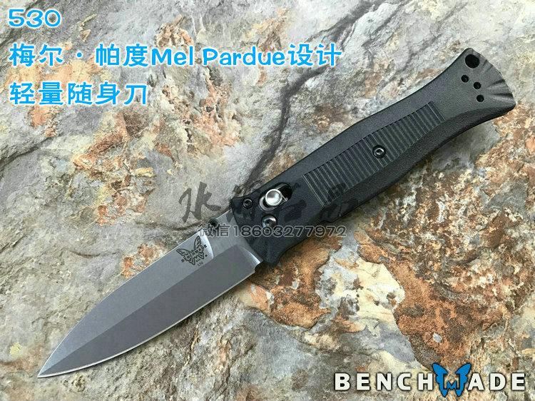 1990年,Benchmade刃具公司在俄勒冈州克拉卡马斯建立(公司最初是1988年在加州成立的),最早的产品是Bali-Song系列,是进口原型自己加工出的成品。和大多数公司一样,起步之初都面临过大计划时资金匮乏的状况,所以使用二手设备和有限资源来生产。但很快,创业者天生的坚韧与不灭的激情,使Benchmade走向成功,不断壮大,产品线也不断增加,达到可以自行设计生产的水平。公司开始购置新设备,引进新技术,包括一些激光设备,使Benchmade 成为国内第一家使用这些设备的刃具厂商。开放的观念和实际的态度,引领公司在创办之初入行,并在以后的几年中持续进步。