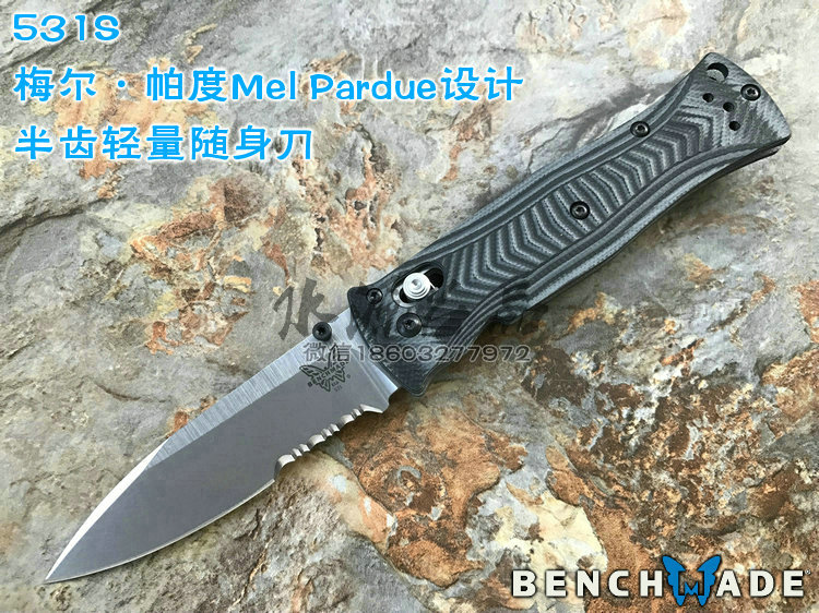1990年,Benchmade刃具公司在俄勒冈州克拉卡马斯建立(公司最初是1988年在加州成立的),最早的产品是Bali-Song系列,是进口原型自己加工出的成品。和大多数公司一样,起步之初都面临过大计划时资金匮乏的状况,所以使用二手设备和有限资源来生产。但很快,创业者天生的坚韧与不灭的激情,使Benchmade走向成功,不断壮大,产品线也不断增加,达到可以自行设计生产的水平。公司开始购置新设备,引进新技术,包括一些激光设备,使Benchmade 成为国内第一家使用这些设备的刃具厂商。开放的观念和实际的态度,引领公司在创办之初入行,并在以后的几年中持续进步。