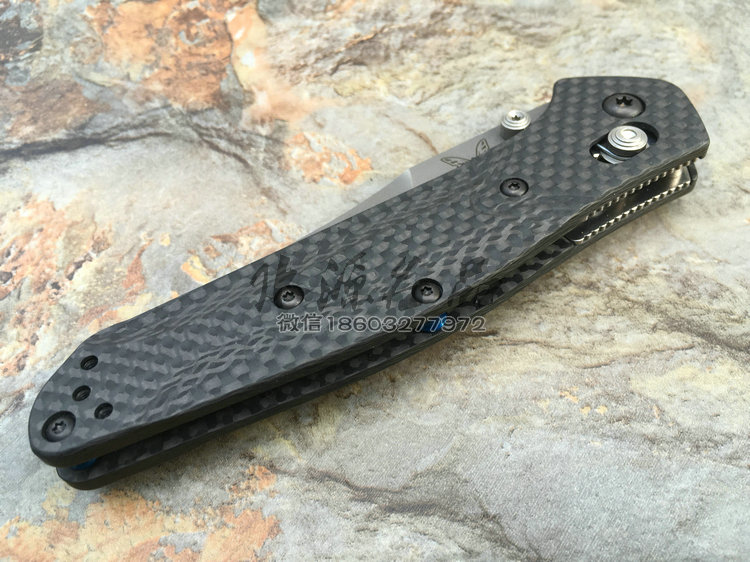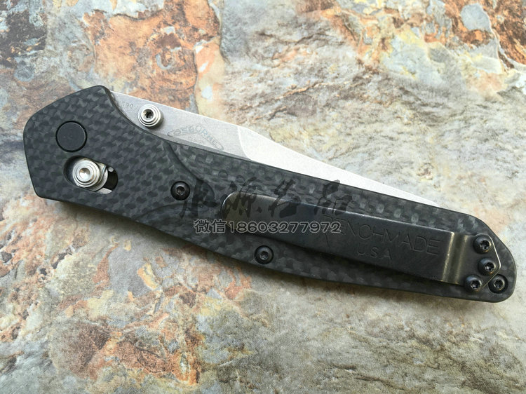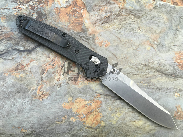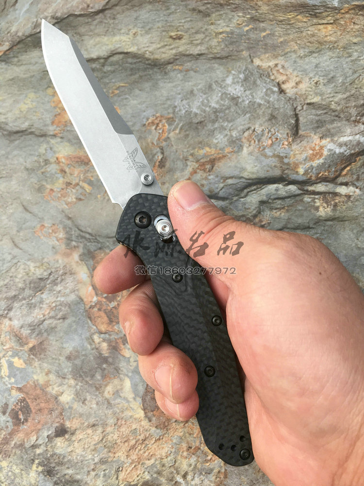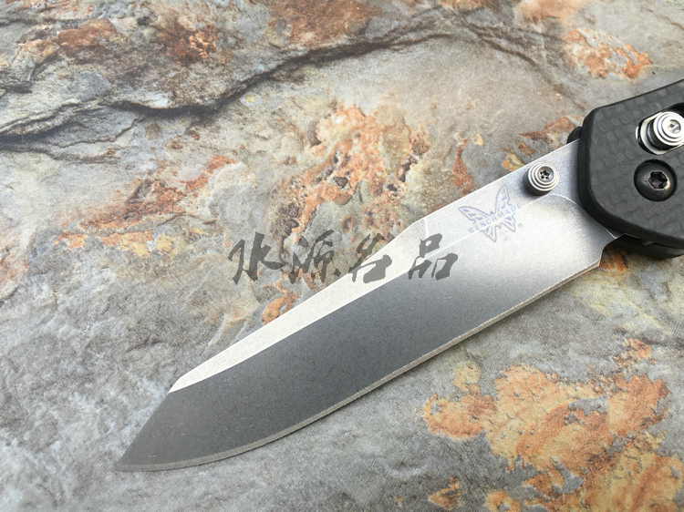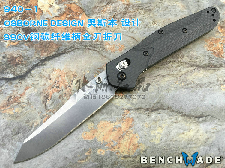 类 型: 折刃 轴锁 型 号: 940-1 全 长: 200 mm 刃 长: 87 mm 硬 度: 61-62HRC 刃 材: S90V 表 面: 缎面 刃 厚: 2.9mm 柄 长: 113mm 重 量: 82g 柄 材:碳纤维 原产地: 美国 蝴蝶刃具的轴锁刃型几乎是实用与质感的代名词,自从第一款轴锁折刃的诞生,轴锁就成为折刃的三大锁定方式之一,它以安全与便捷并存,更受高品味人士的喜爱。本款除了轴锁与S90V钢材,碳纤维柄,碳纤维的优雅质感,无一不是高档品味的代名词,它能第一眼让你产生高贵华丽的美感,如用它做为EDC,它将让你聚焦更多的目光,增添气质。