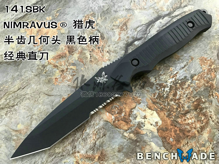 线条圆滑流畅的 141 - Nimravus 猎虎 是 Benchmade 的第一个直柄刃型号,并已经畅销多年。当时,很多Benchmade 顾客希望看到和 Benchmade 折刃具有类似外形、相同材料和风格的直刃款式,因此由著名设计师 Allen Elishewitz 设计出Nimravus (猎虎) 。正如你所见,它的确凭着优美实用的刃形和出众的表现征服了顾客挑剔的心。其几何设计使它名列当代最强悍刃型设计之列。