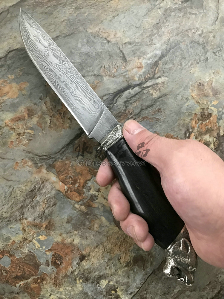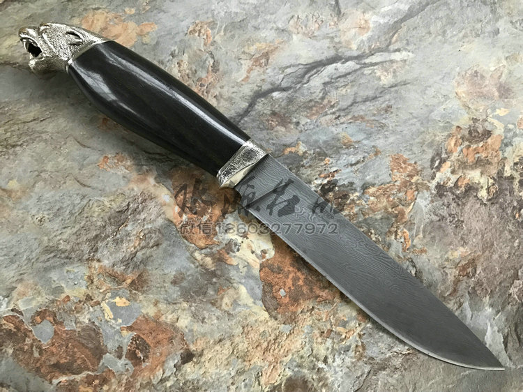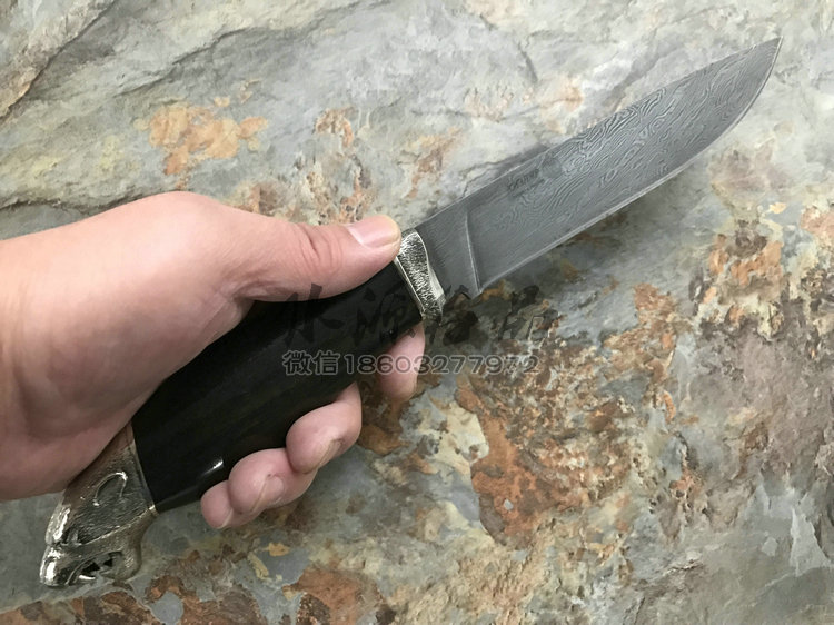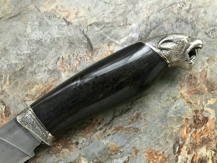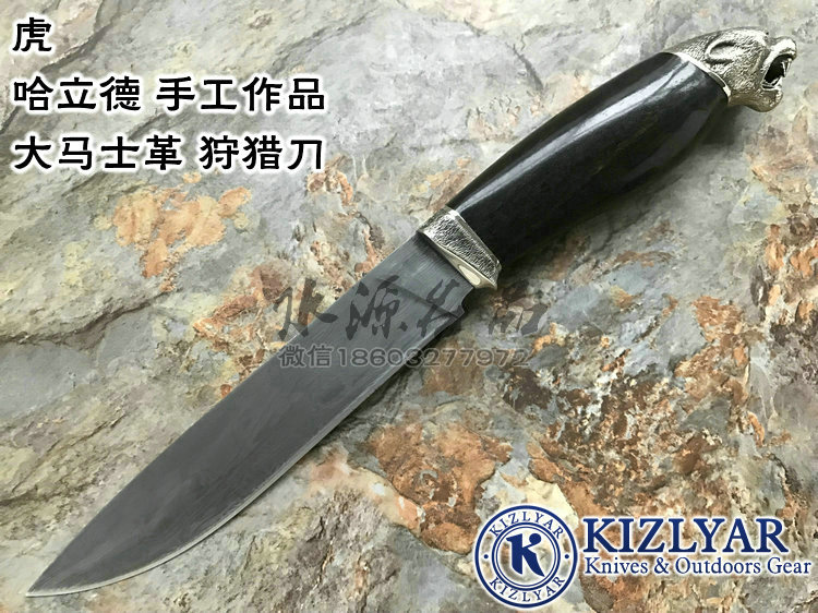 虎为俄罗斯手工刀匠哈立德手工作品,刀身为手工锻打大马士革性能卓越,简洁利落的刀型适合切割。